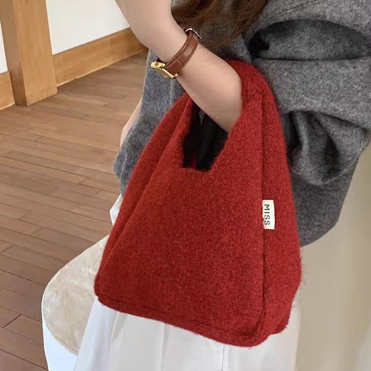 ウール入り高級ハンドバッグ、女性用ウール韓国版、多用途無地通勤ハンドバッグ、高級シンプルニットバッグ