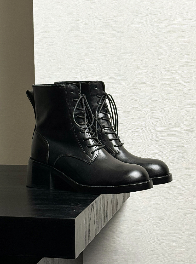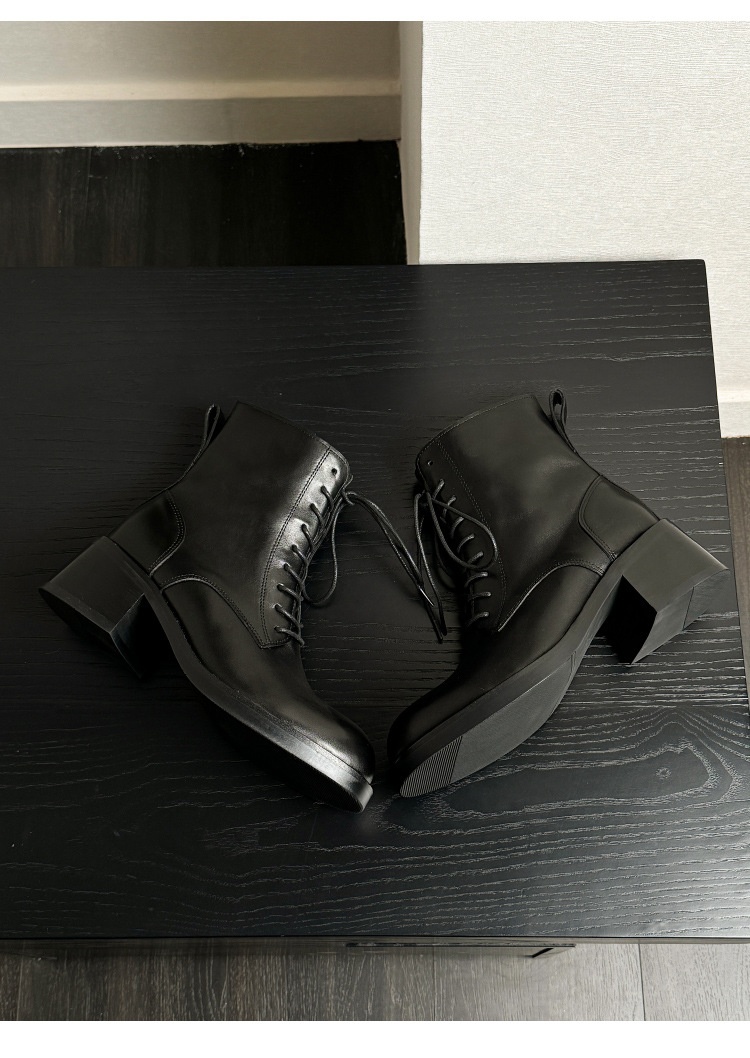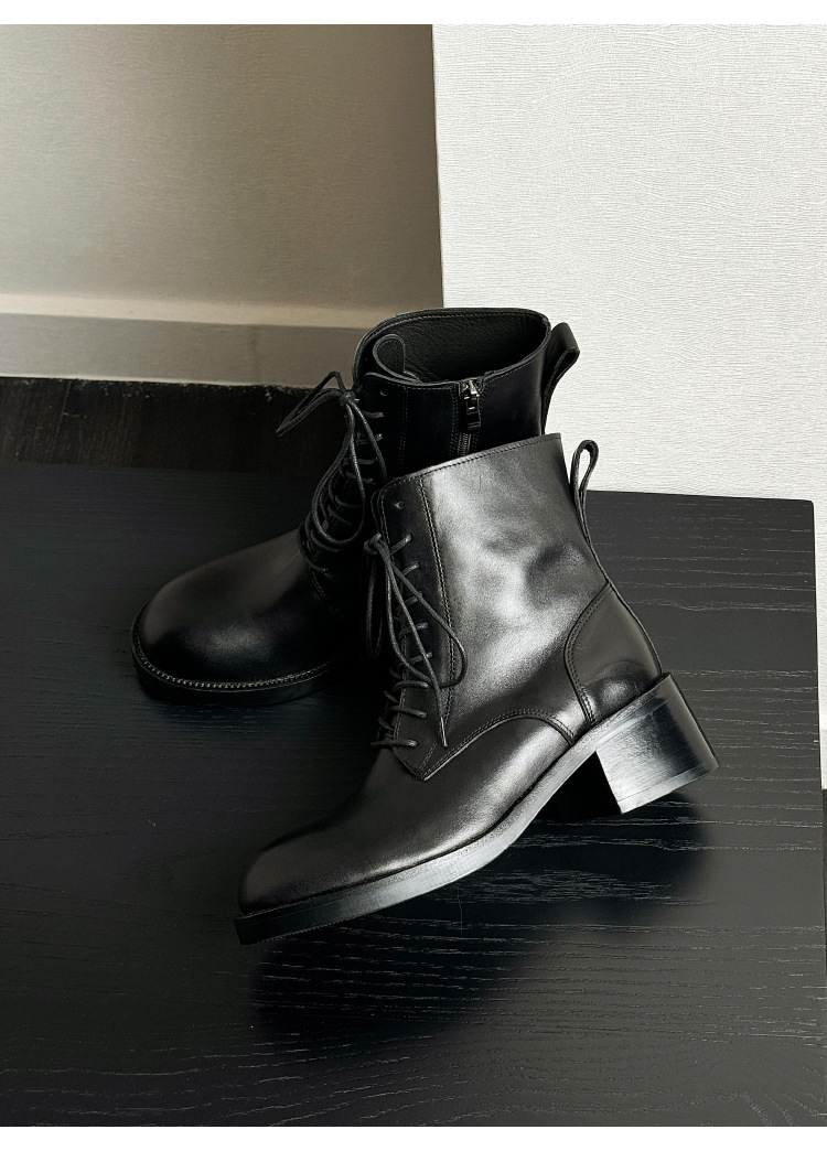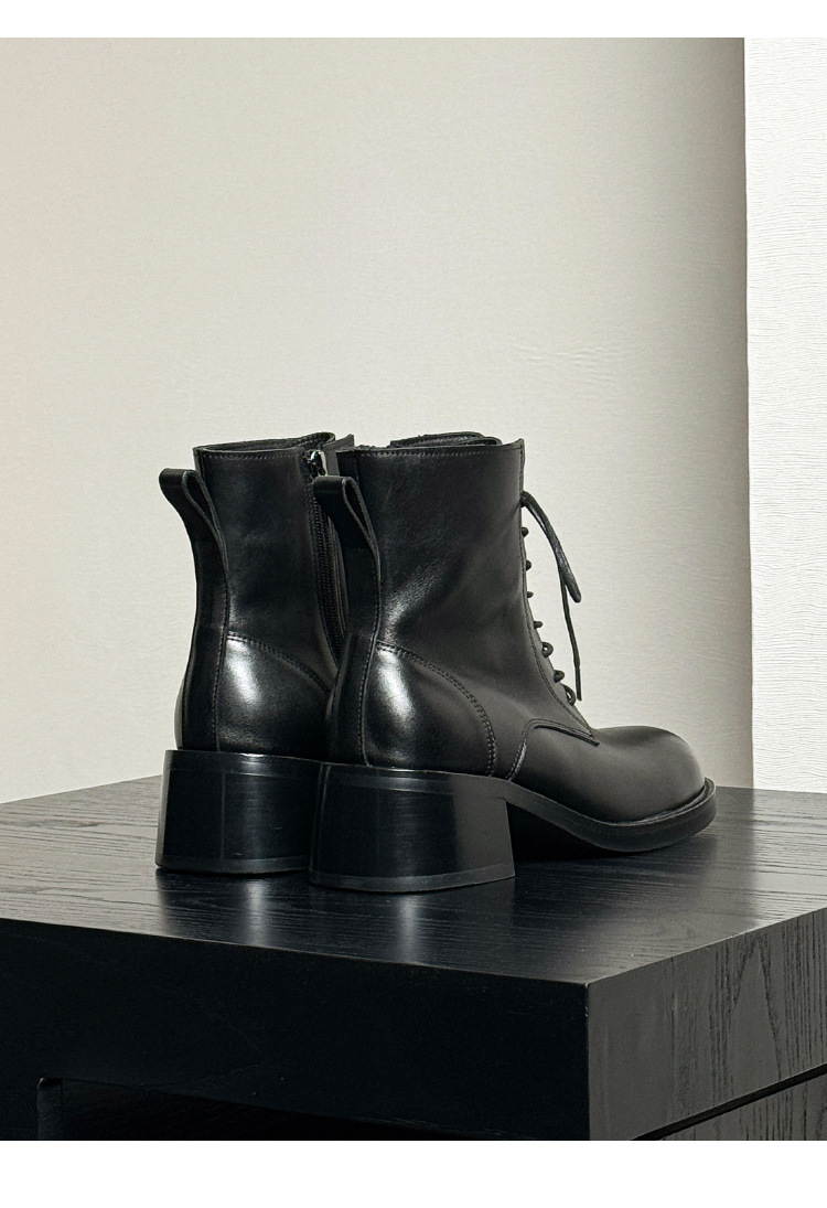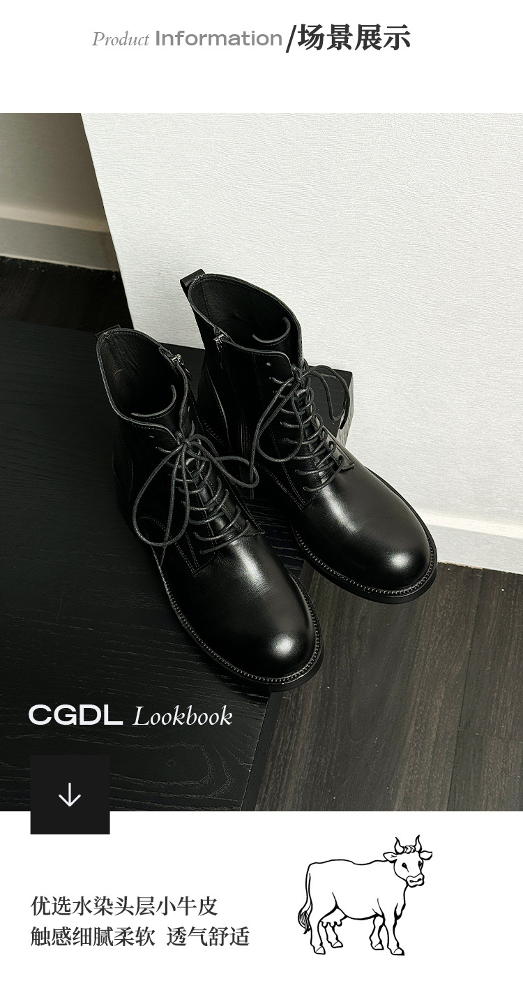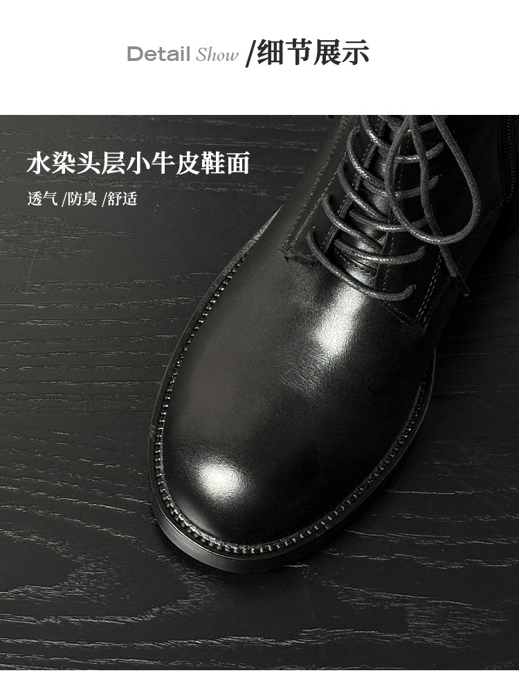 代発馬丁靴漆皮亮面男高さ6cm高級感英倫風厚い底機関車ショートブーツ黒