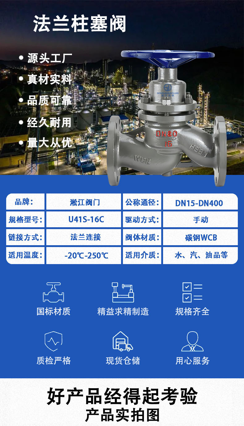 フランジ付きピストンバルブ U41S-16C 炭素鋼 蒸気 熱媒遮断弁 高温ボイラー ピストンバルブ 耐腐食性