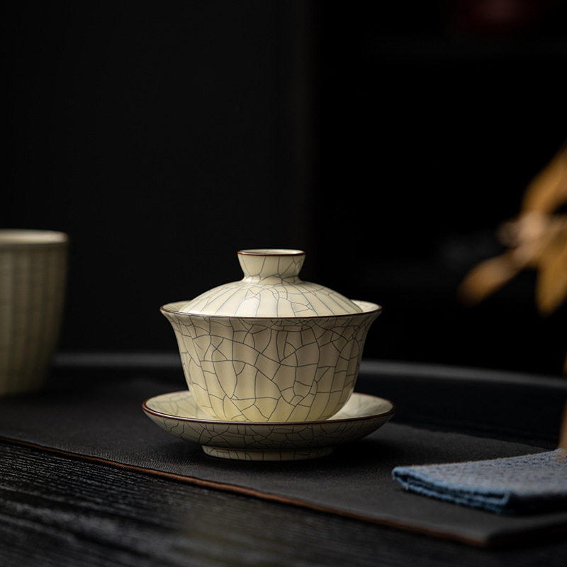 黄汝窯蓋碗茶杯工夫茶器セット家庭用中国式客泡茶蓋碗ティーポット高級ギフトボックス