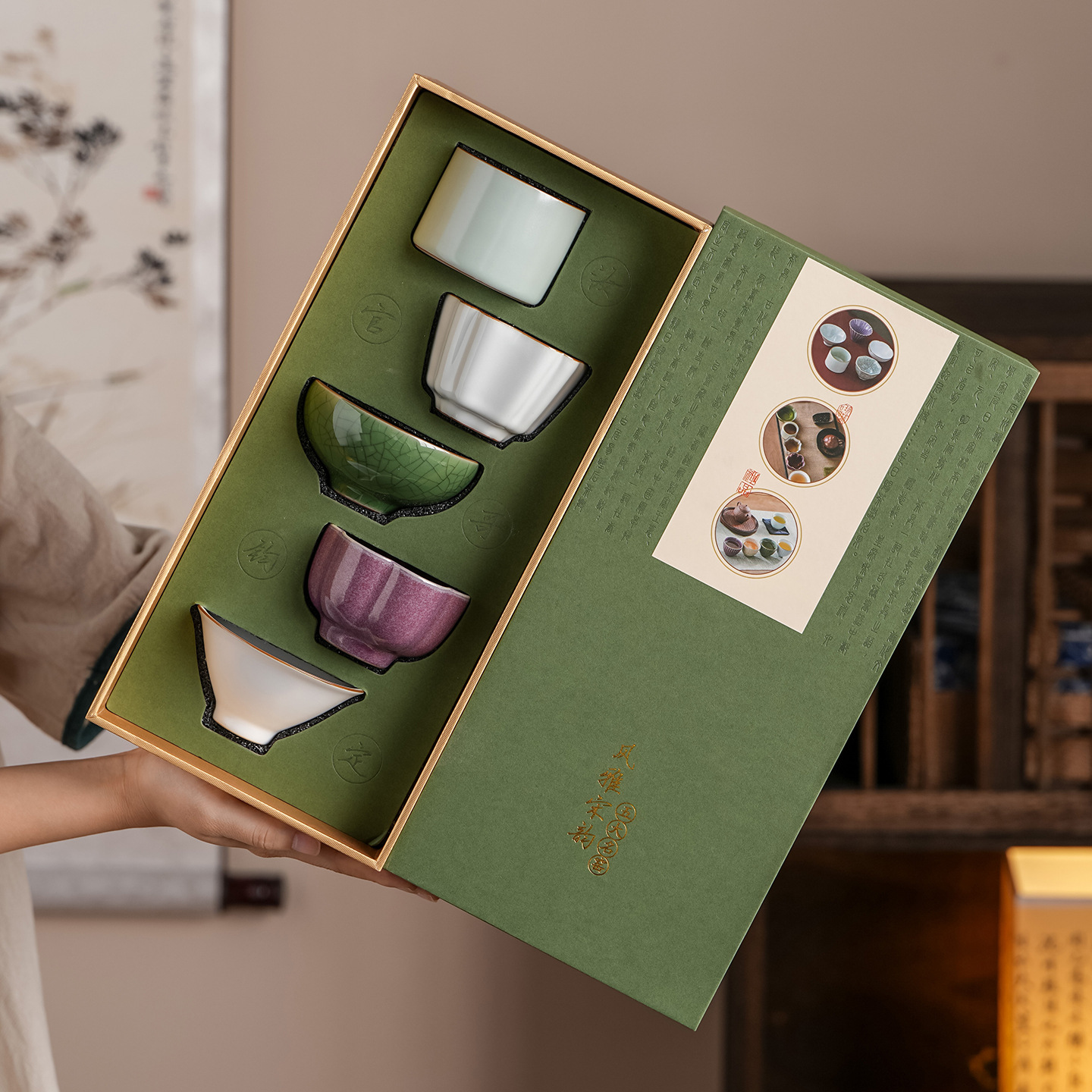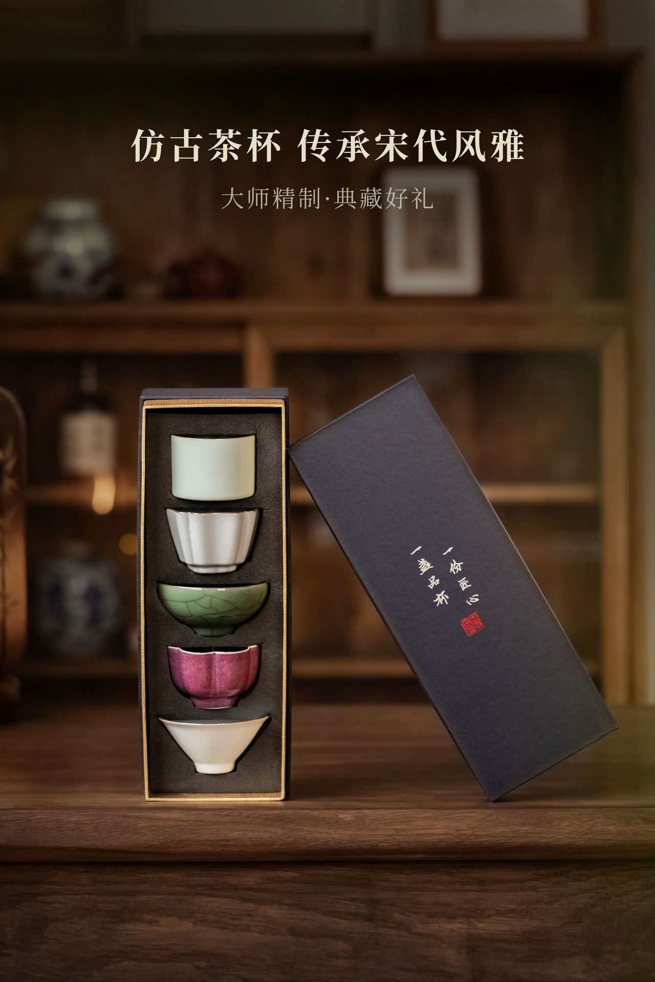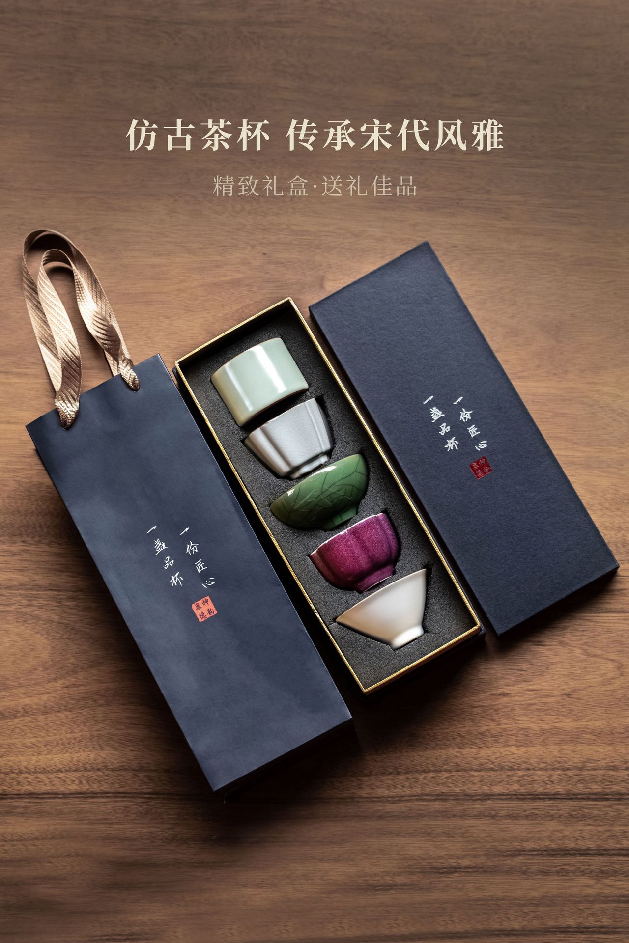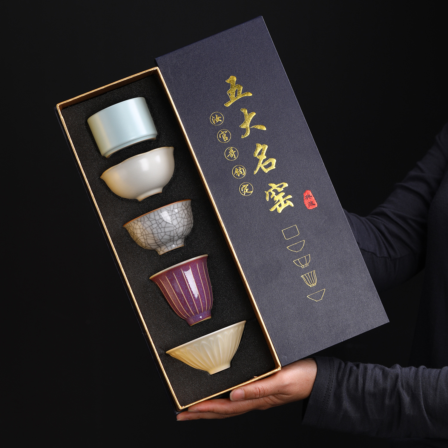 五大名窯茶道具大カップ礼箱セット陶磁器茶わん茶碗汝磁器主人杯文創伴手礼
