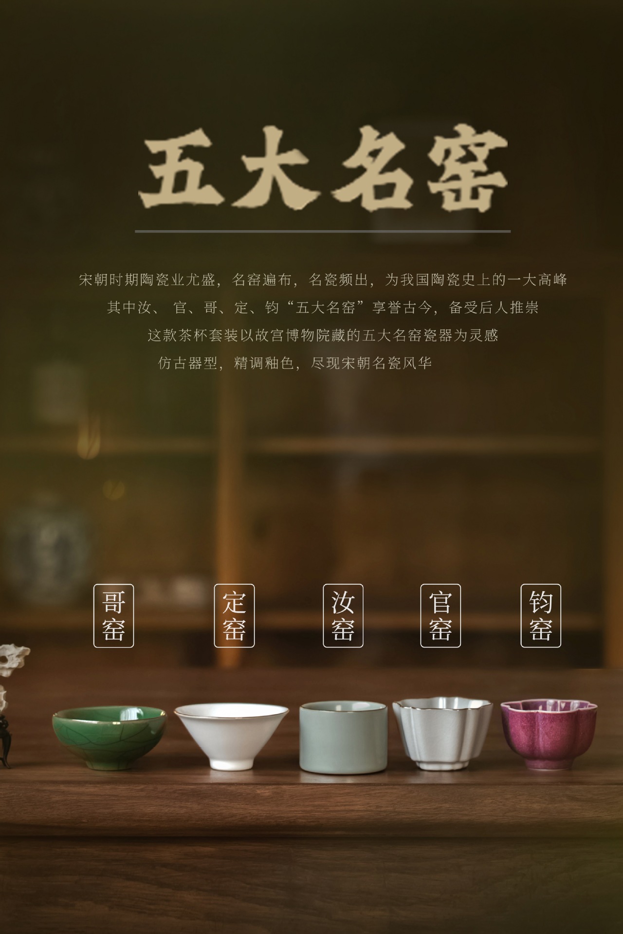 五大名窑茶杯套装礼盒品茗杯主人杯故宫文创乔迁国庆生日商务礼品