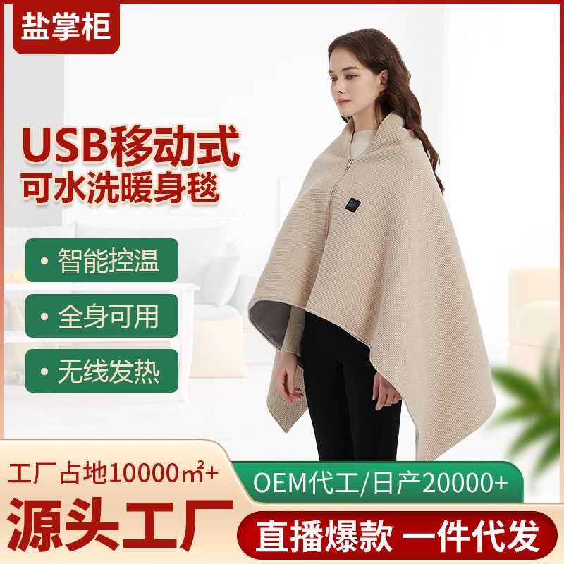 塩店主はじゅうたんをかぶって電気加熱して体を温めます。