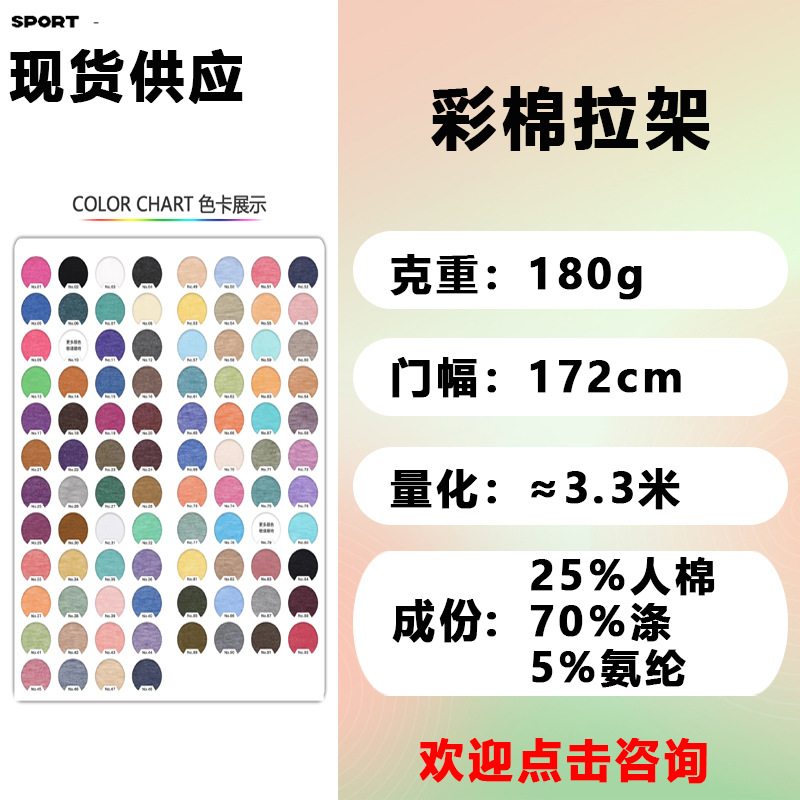 200g彩棉拉架汗布针织面料TR幻彩人棉平纹面料涤棉氨针织双色汗布