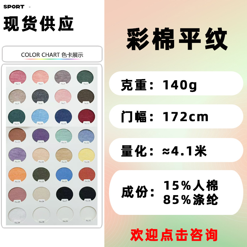 140gカラー綿平織り片面汗布生地TR人綿混紡超薄花色tシャツ底付きニット生地