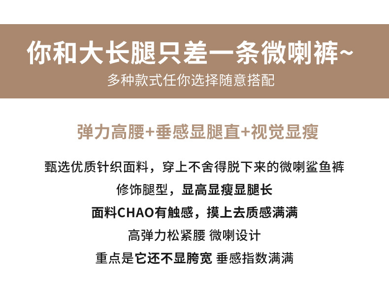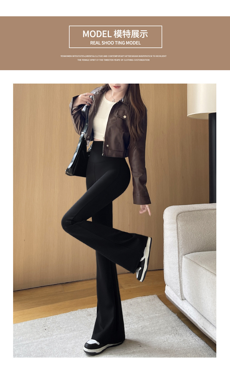 カジュアルなズボンの女性のサメの皮のズボンのカジュアルなズボンの2024秋冬の垂感の小さいラッパのズボンの高い腰はやせているレギンスの女性を現します。