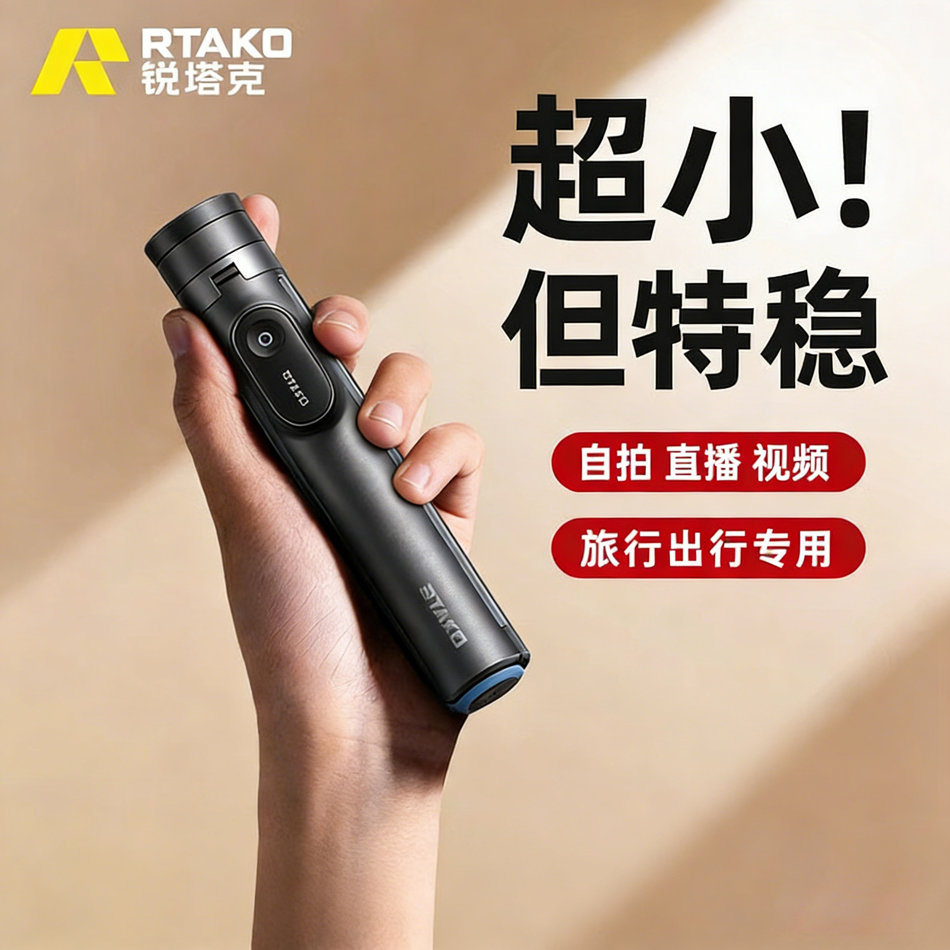锐塔克2025丢丢杆自拍杆落地三脚架一体式手持自拍神器便携支架