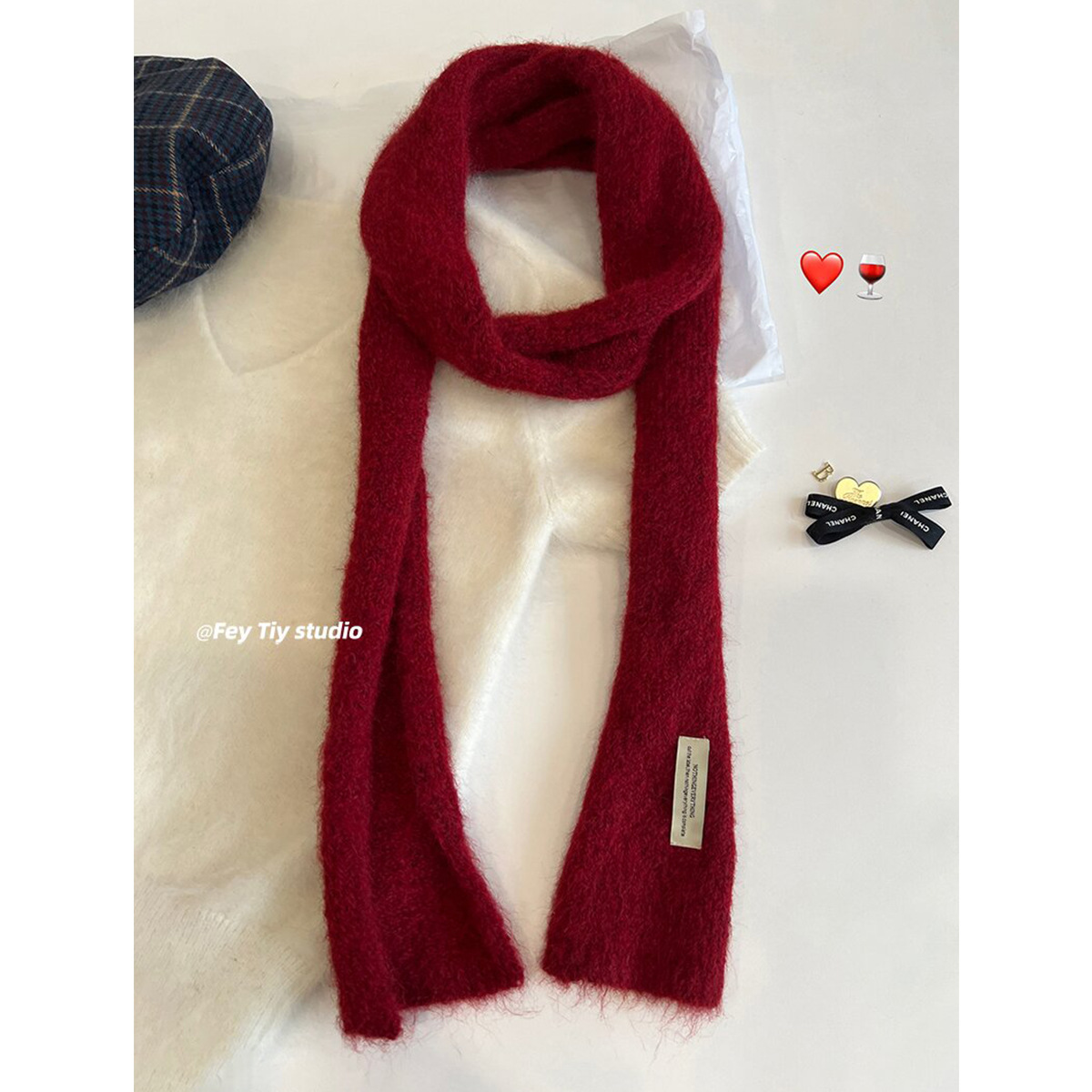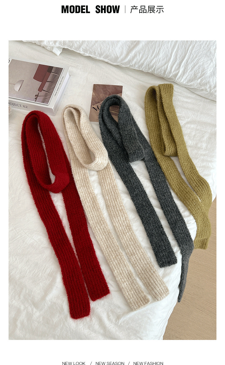 韩国小众设计卷边窄细长条马海毛小围巾辣妹穿搭秋冬保暖