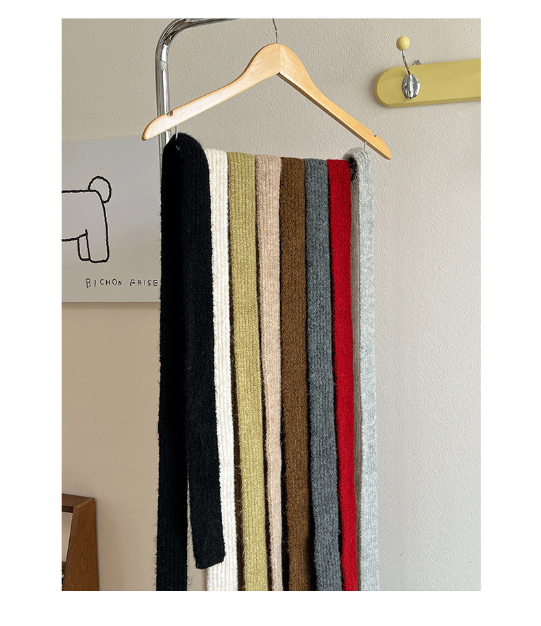 秋冬季新款纯色长条针织毛线围巾百搭韩版细窄长款羊毛保暖围脖