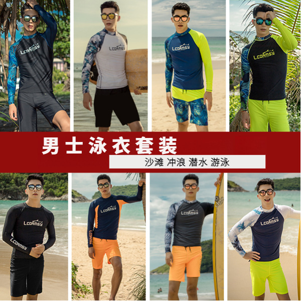 水着男性セット成人水泳長袖日焼け止め水着新型気まずい水泳パンツ速乾通気水着