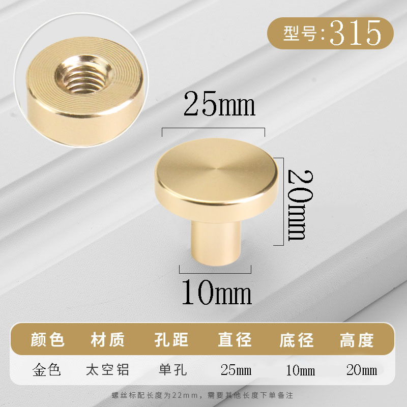 現代シンプルなアルミ合金単孔金色たんすドア取っ手丸型金物部品戸棚引き出しキャビネットドア取っ手