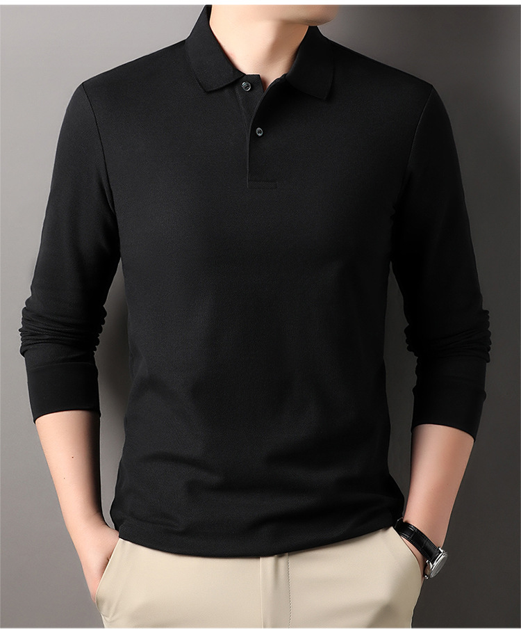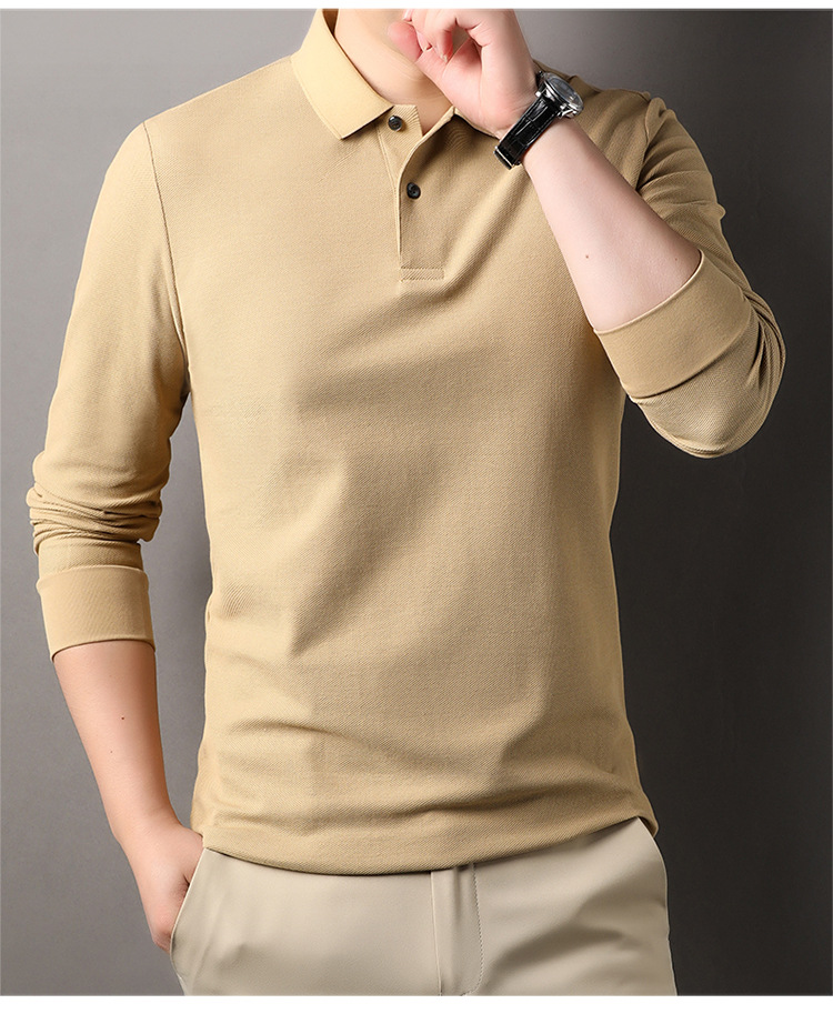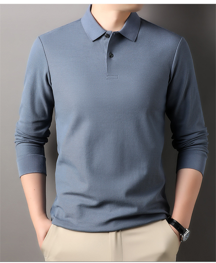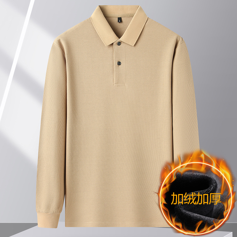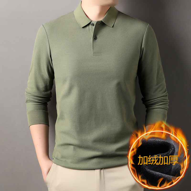 ベルベット純綿長袖poloシャツ男秋冬中年長パイル綿純色シンプル襟ビジネス男性tシャツ