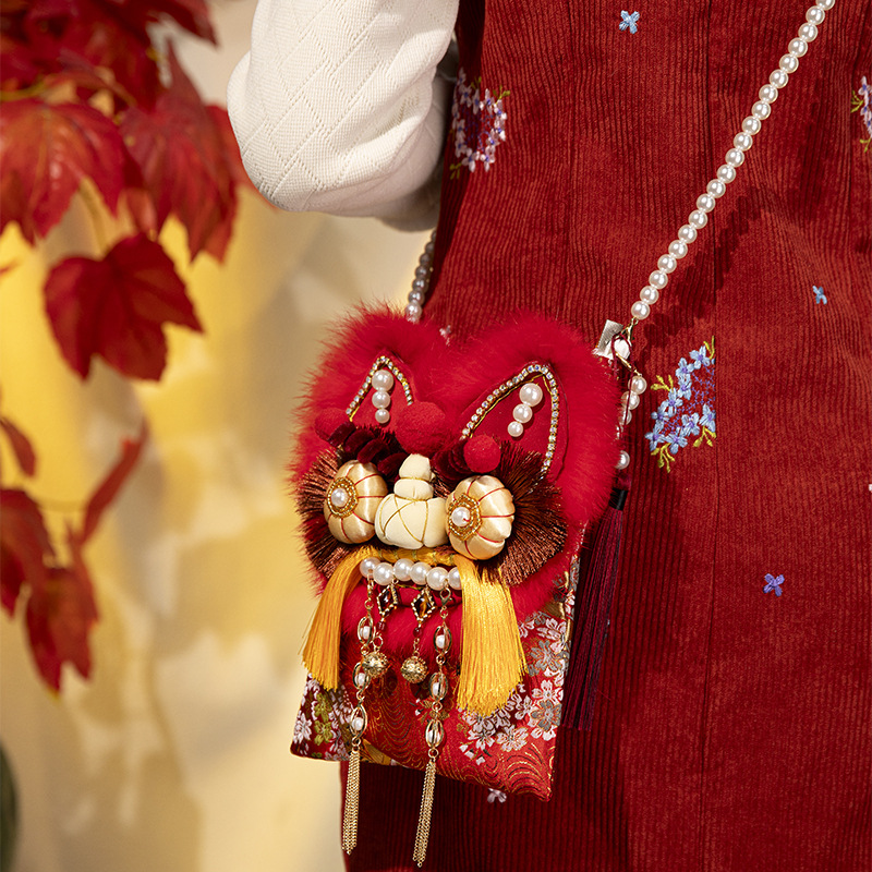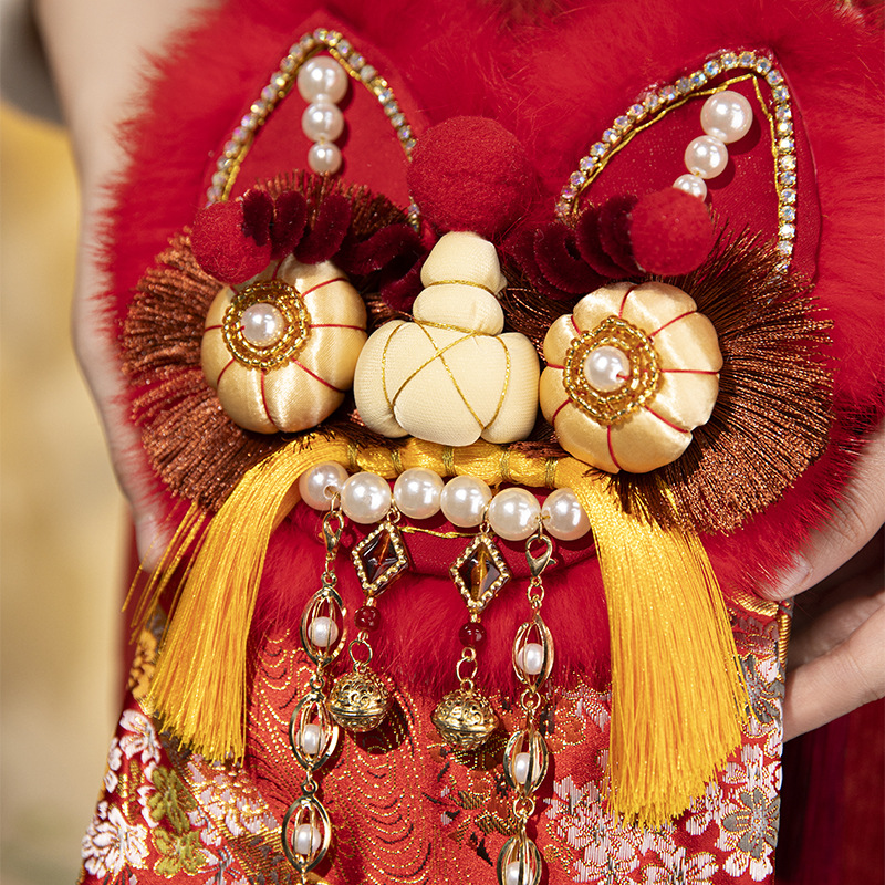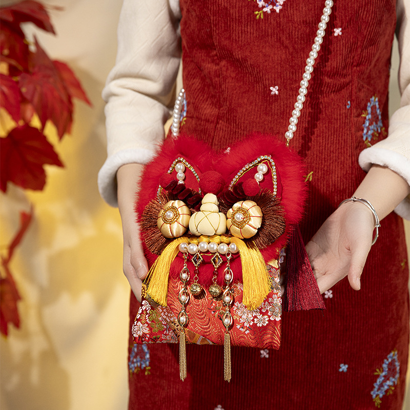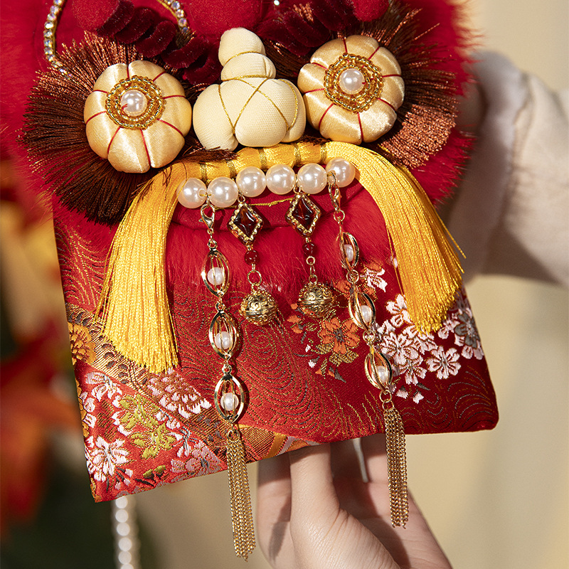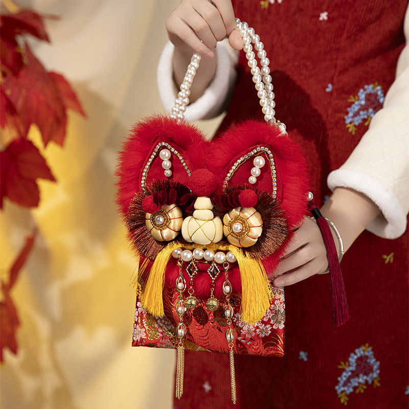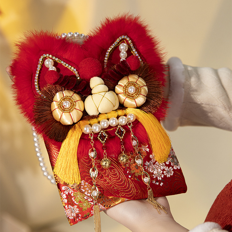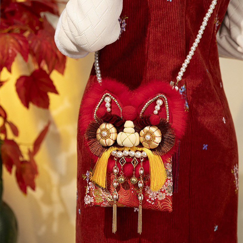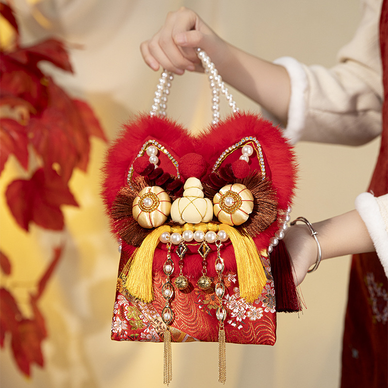 虎頭虎脳2024新型手作りDIY虎頭国風刺繍と漢服かわいい民族風携帯バッグ