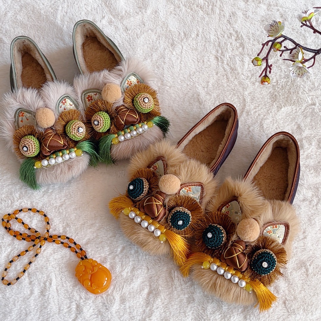 真毛手工原创虎头鞋 2026新款布鞋女平底软汉服新中式重工非遗鞋
