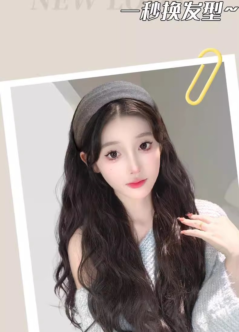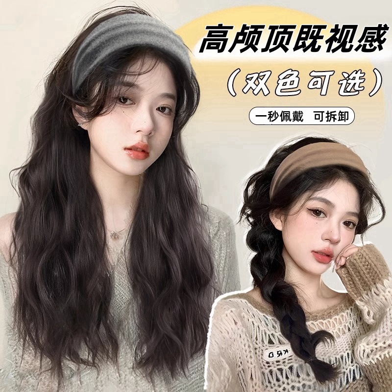宽边发箍假发一体女秋冬长卷发头箍半头套高颅顶假发头饰