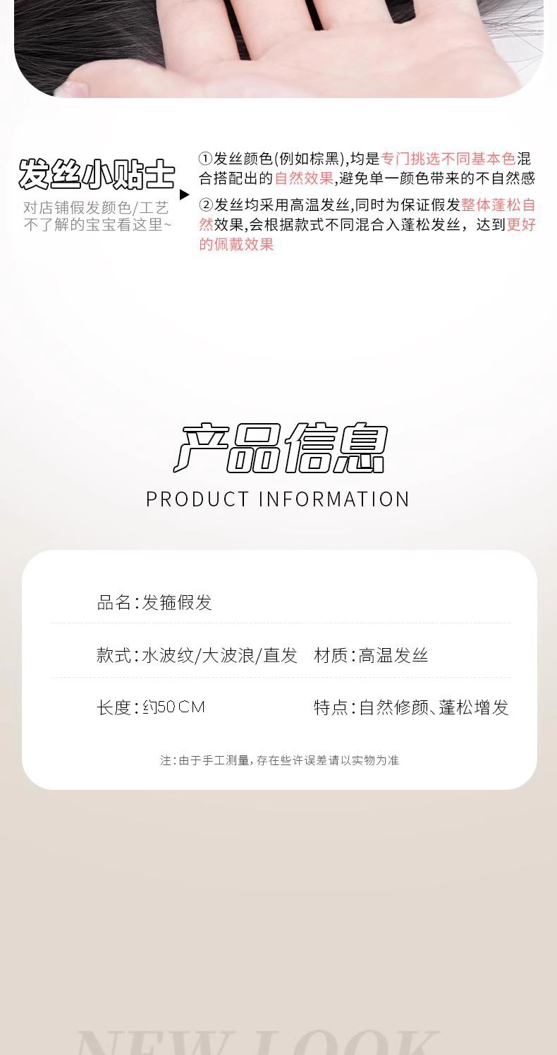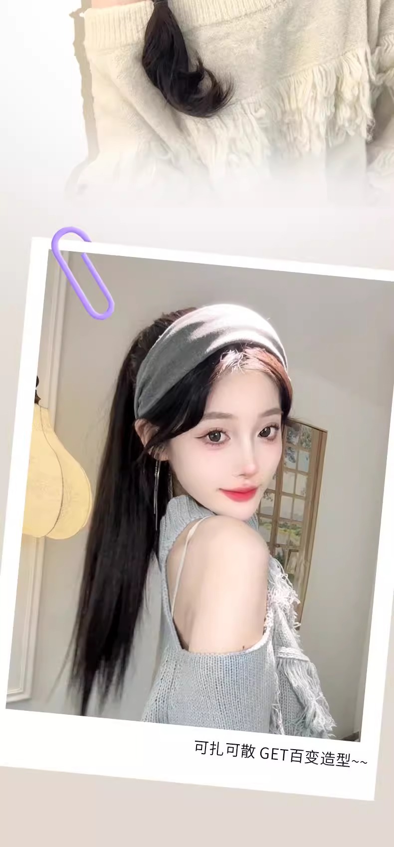 品名:可拆卸发箍半头套