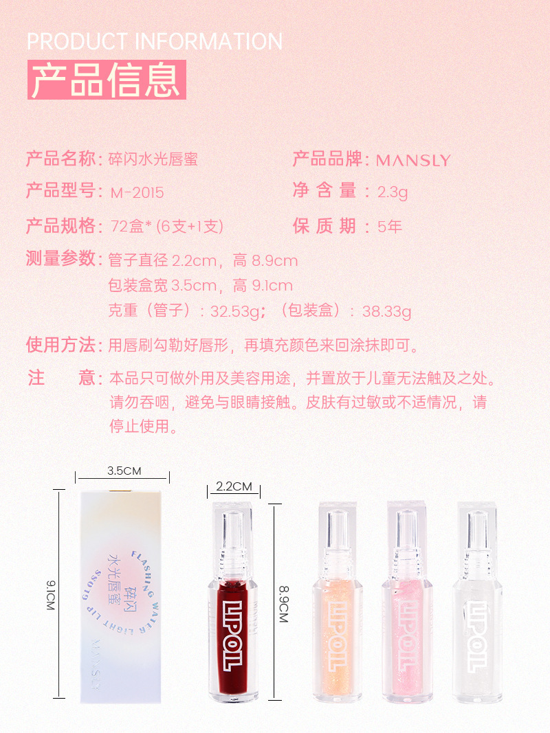 曼詩麗砕閃水光唇蜜水潤鏡面唇乳潤い細い閃唇釉薬唇彩学生女性平価メーキャップ