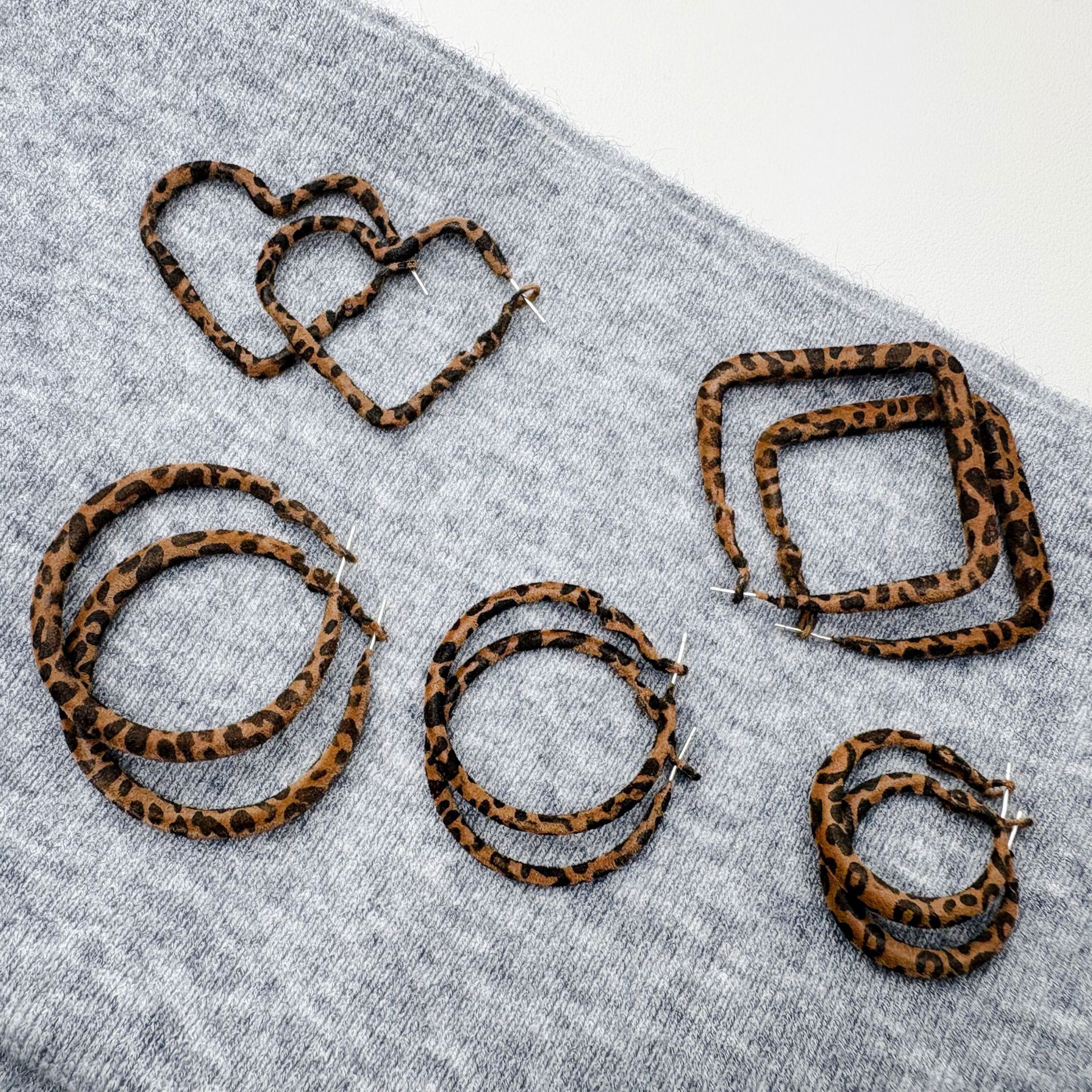 复古植绒几何豹纹耳钉女款轻奢高级感耳环耳饰品气质耳圈耳坠配饰