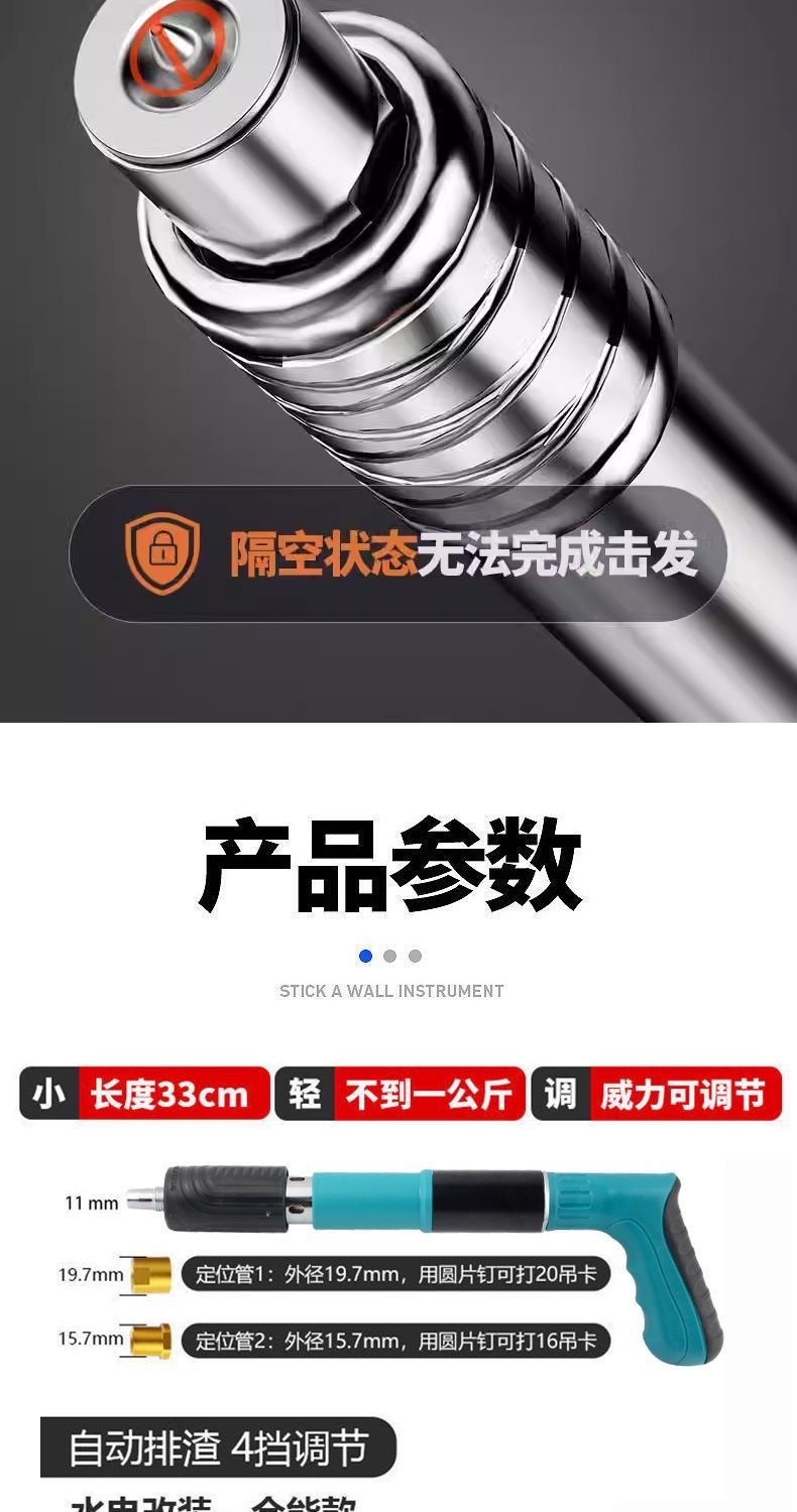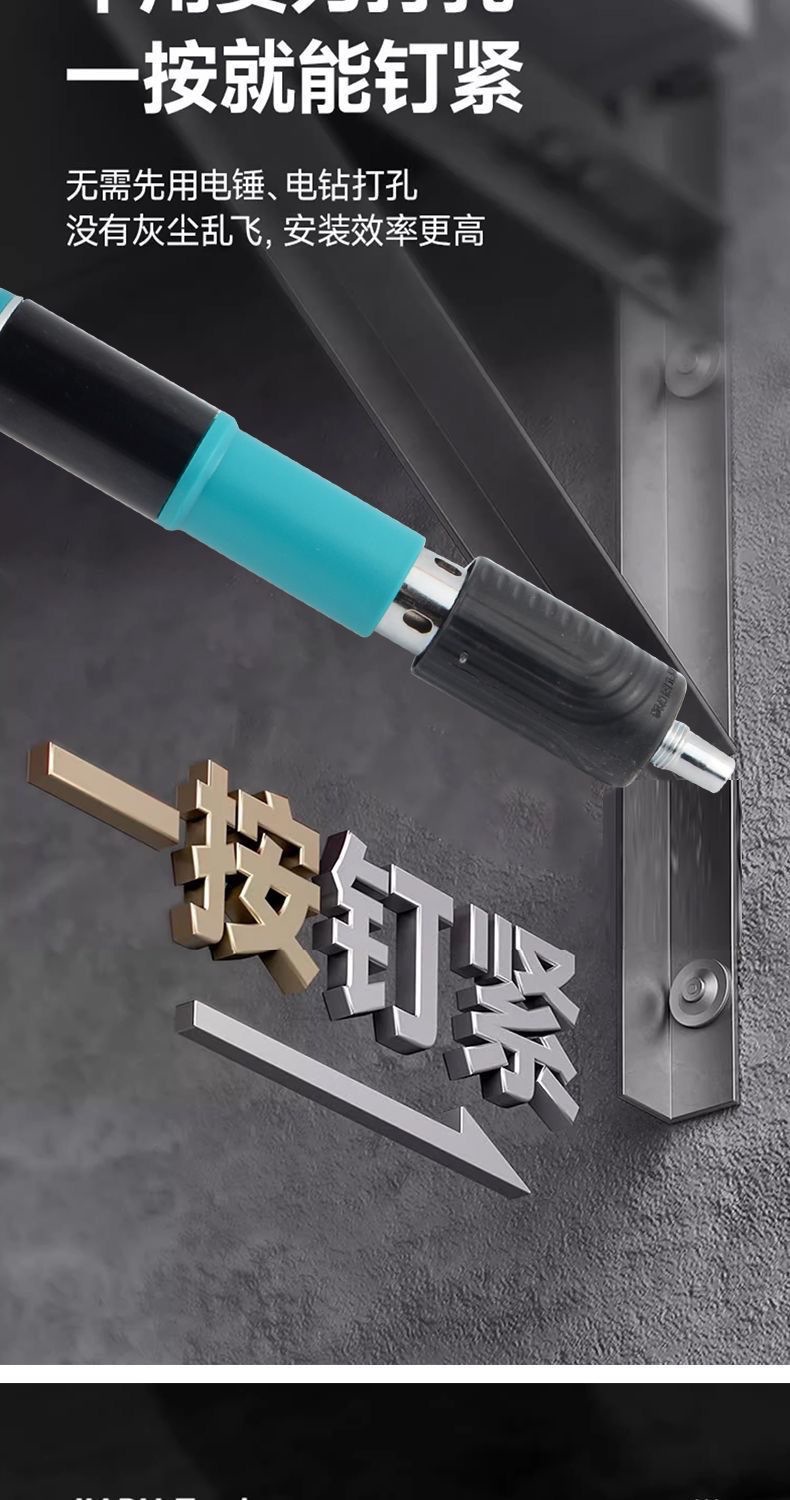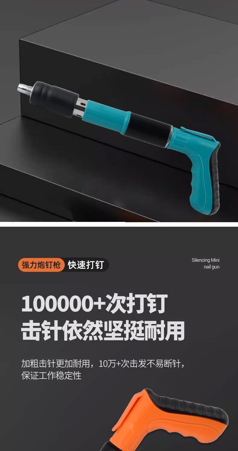 卸売用釘打ち機、天井施工用、特殊鋼製、コンクリート一体型消音、セメント壁用鋼製釘
