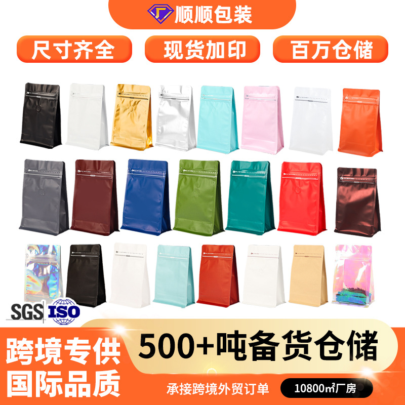 八边封咖啡袋塑料镀铝食品包装袋茶叶坚果自立自封铝箔咖啡袋定制