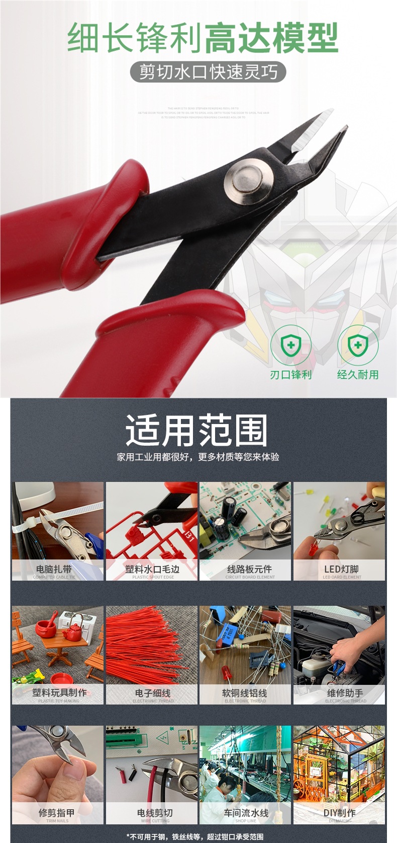 电子剪170塑料钳子电子钳5寸 剪斜口钳 斜嘴钳高达 模型剪
