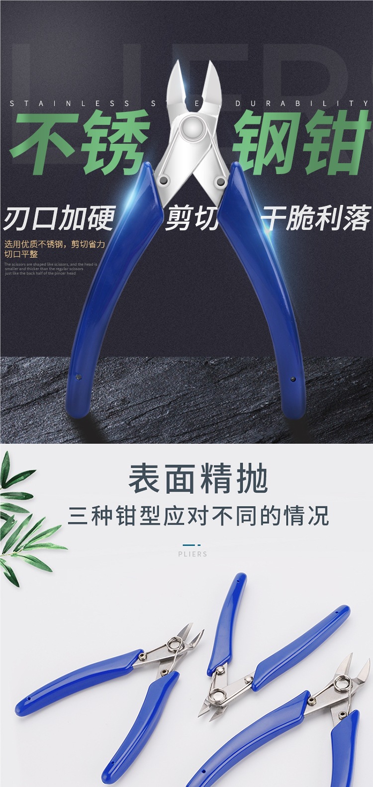 斜口钳水口钳子剪钳剪线钳高硬度电工专用小型电子钳不锈钢工业级