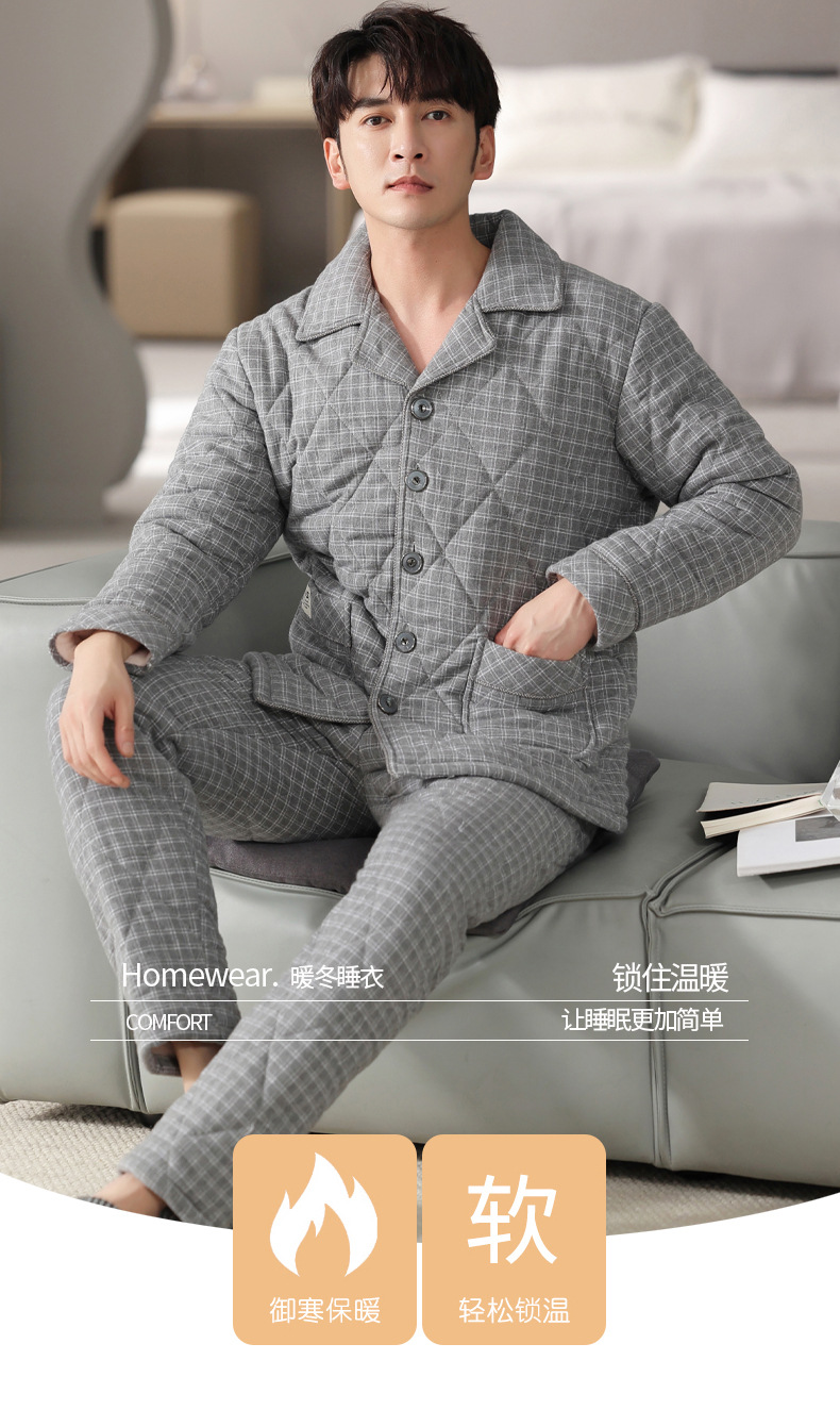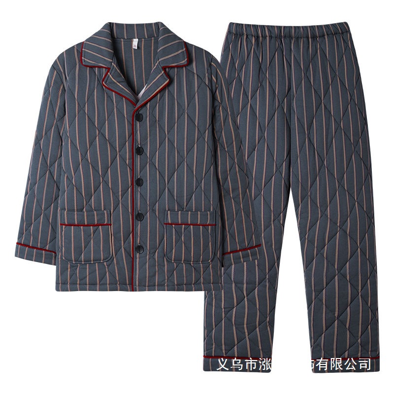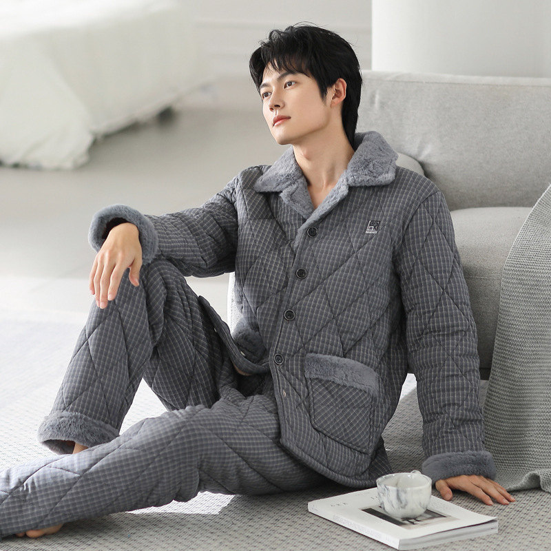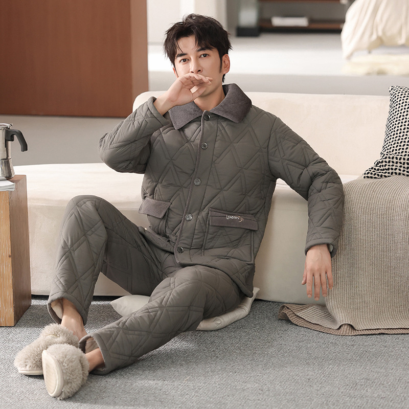 冬のパジャマ男純綿三層厚手の綿入れを挟んで保温します。