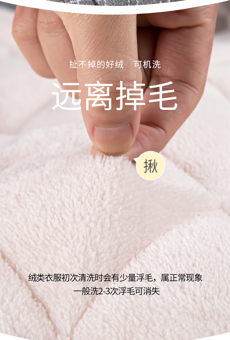パジャマの女性は冬の三階に厚いベルベットのシャトル織り綿綿の家庭服の冬の女性の綿入れの保温スーツを着ている