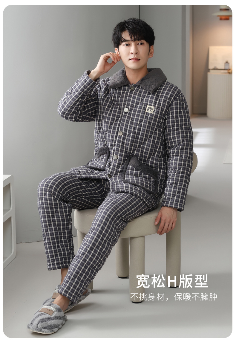 男性三層綿入りパジャマ冬にはベルベットを厚くして綿の保温綿入れを織る静電気防止家庭服セット