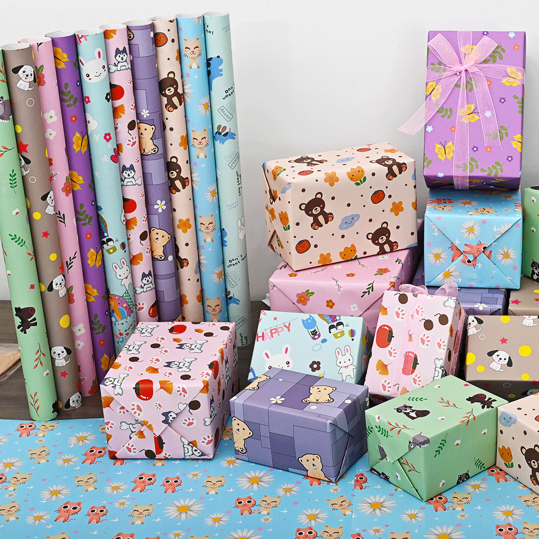 新しい包装紙小清新カラー大サイズ花プレゼント包装誕生日プレゼント箱祝日プレゼント包装紙