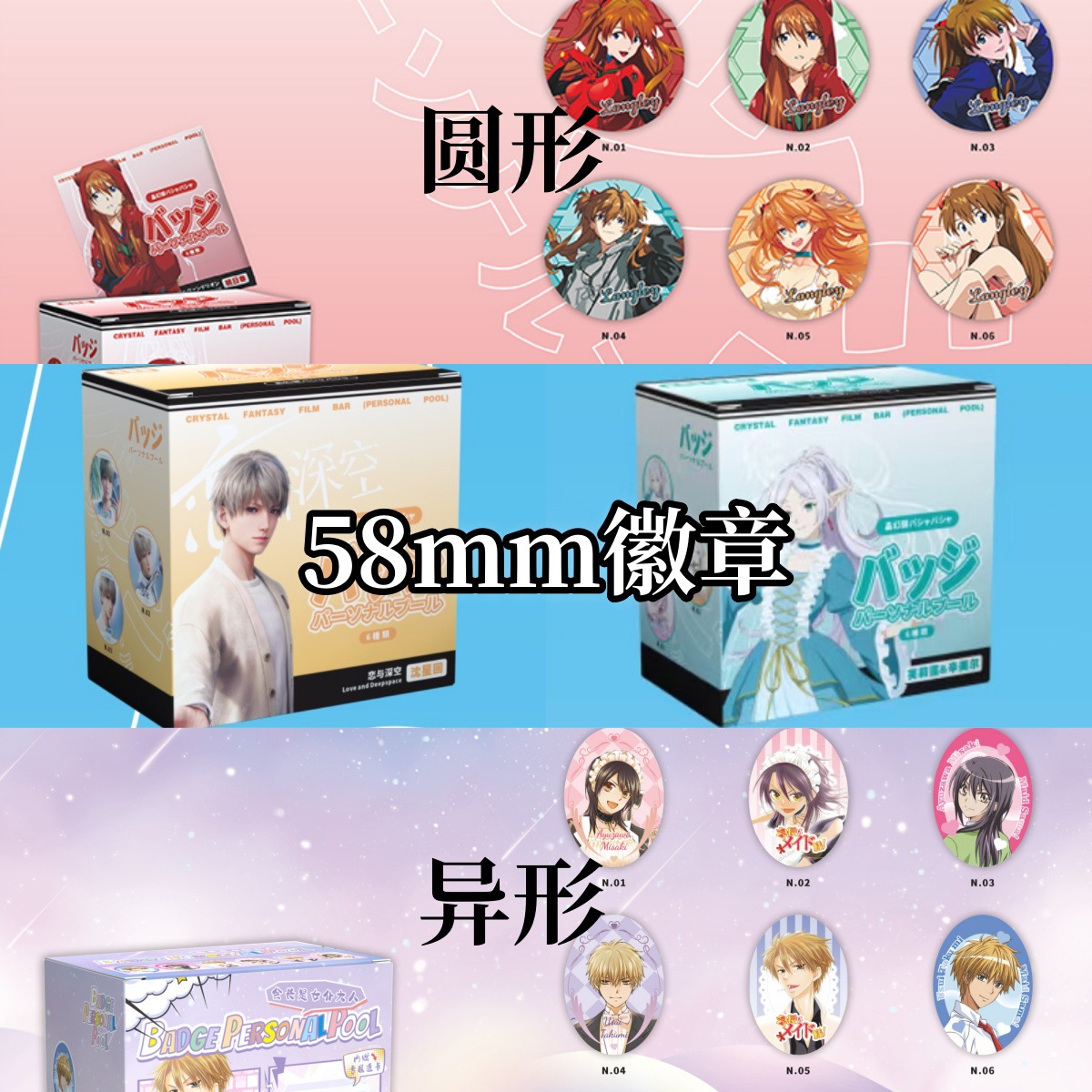 新商品の二次元バッジのブラインドバッグ75mm6個入りバッジにはカードの谷子が含まれています。