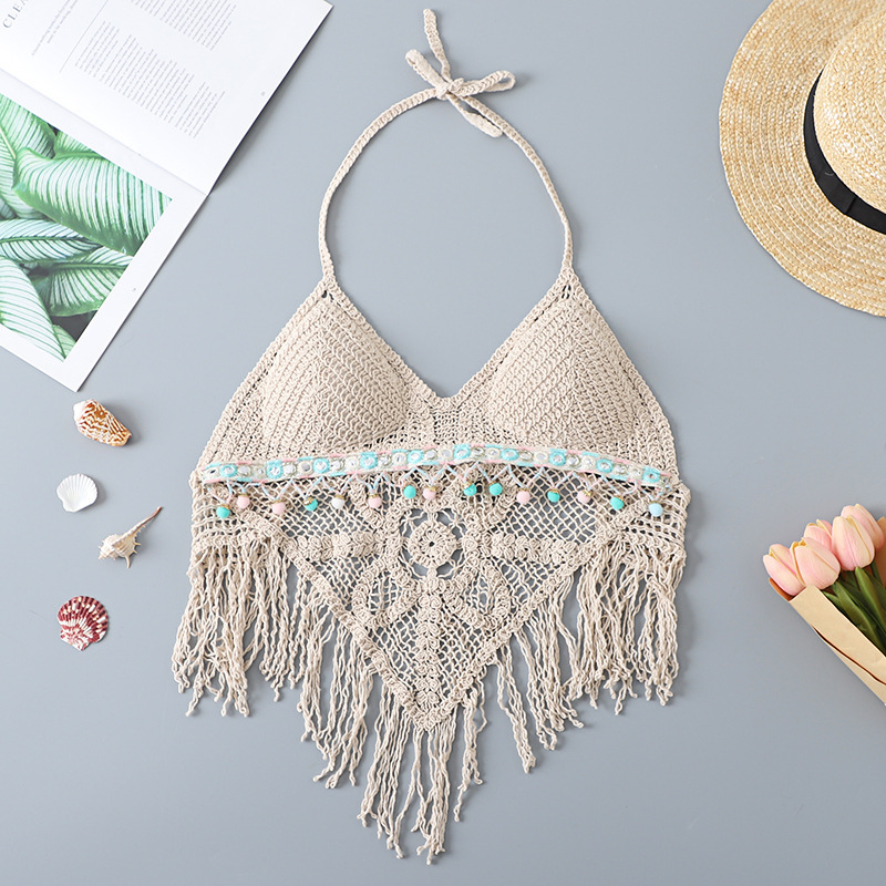 国境を越えた欧米の女装手フック民族風混色吊り珠ストラップビキニ流蘇小ストラップベスト上着女