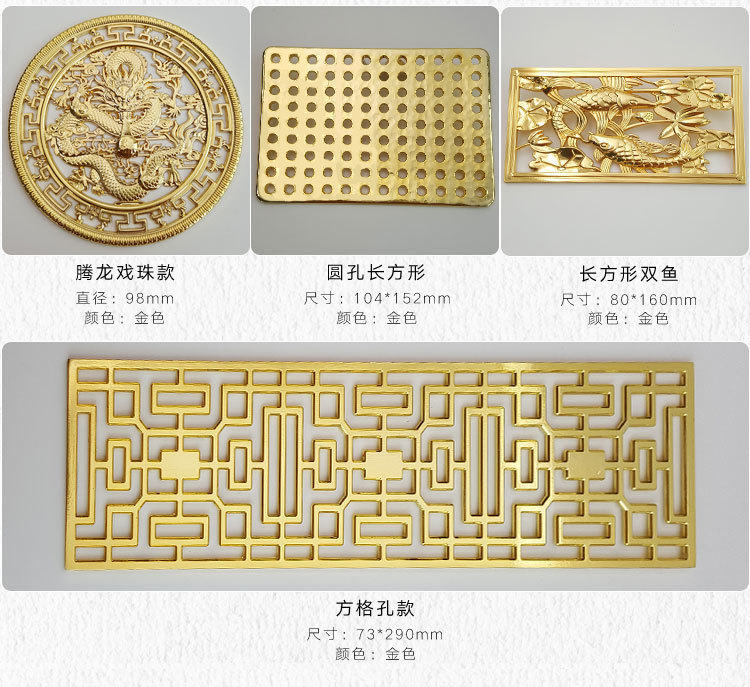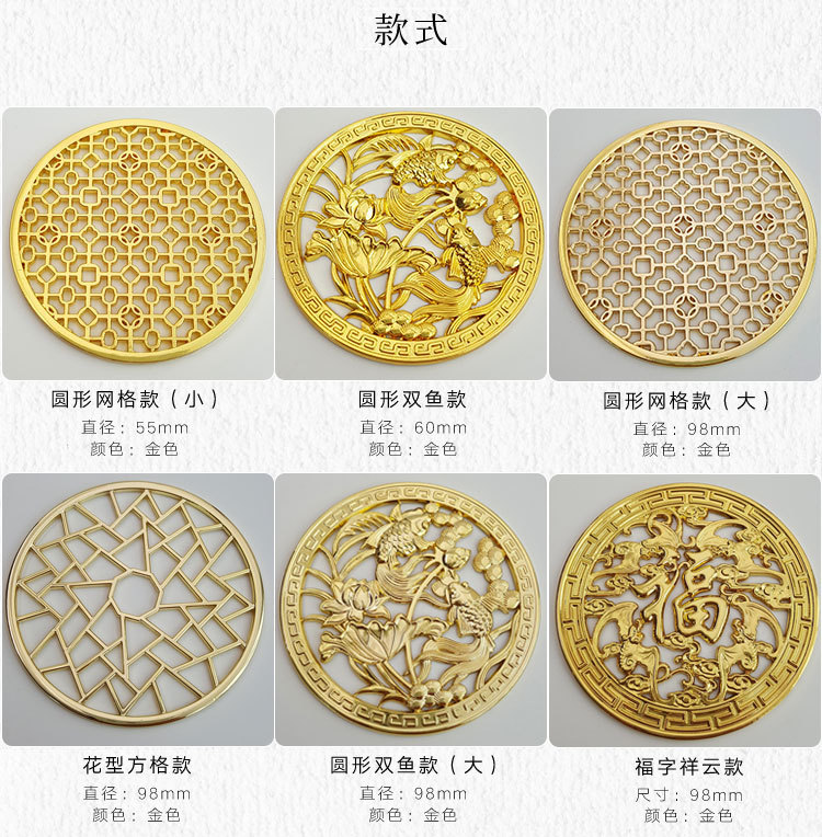 ゴールドラウンドメッシュモデル [55MM],ゴールデンラウンド魚座モデル [60MM],ゴールデンラウンド魚座モデル [98MM],黄金の祝福の縁起の良い雲モデル [98MM],長方形魚座 ゴールド [80*160MM],角穴ゴールド [70×290MM],角穴ゴールド [75×198MM],花型市松赤銅色 [98MM],花型 市松模様 ブロンズ色 [98MM],長方形フラワーウィンドウ ゴールド [78*248MM],シャオサンフーゴールド [60*160MM],ゴールデンチェック柄モデル [50*84MM],長方形セブンスタイル [30*192MM],長方形9マスタイル [30×245MM],ゴールド丸穴モデル [75×293MM],大三福ゴールド [78*248MM]