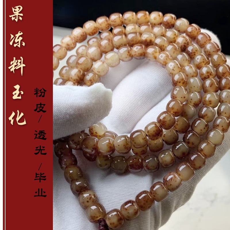 玉化ゼリー料海南星月菩提手串108個の粉皮の古いタイプの桶の玉のカップルのネックレスの仏珠の数珠