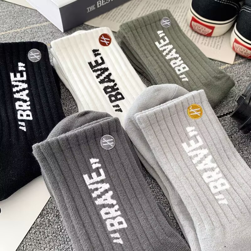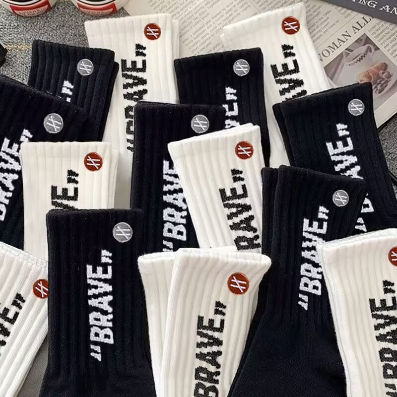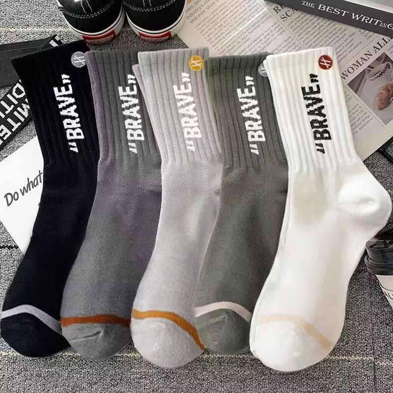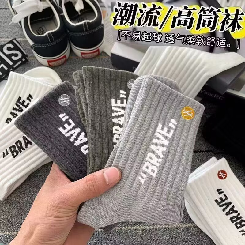 靴下男女共通白黒中筒靴下四季純色スポーツ靴下吸汗防臭ins潮男生運動長