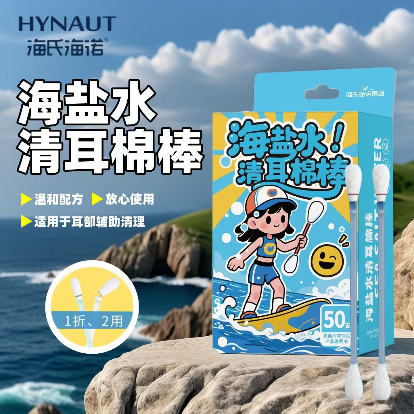 海氏海诺海盐水清耳棉棒一次性棉签双头可用家用外出便携独立包装
