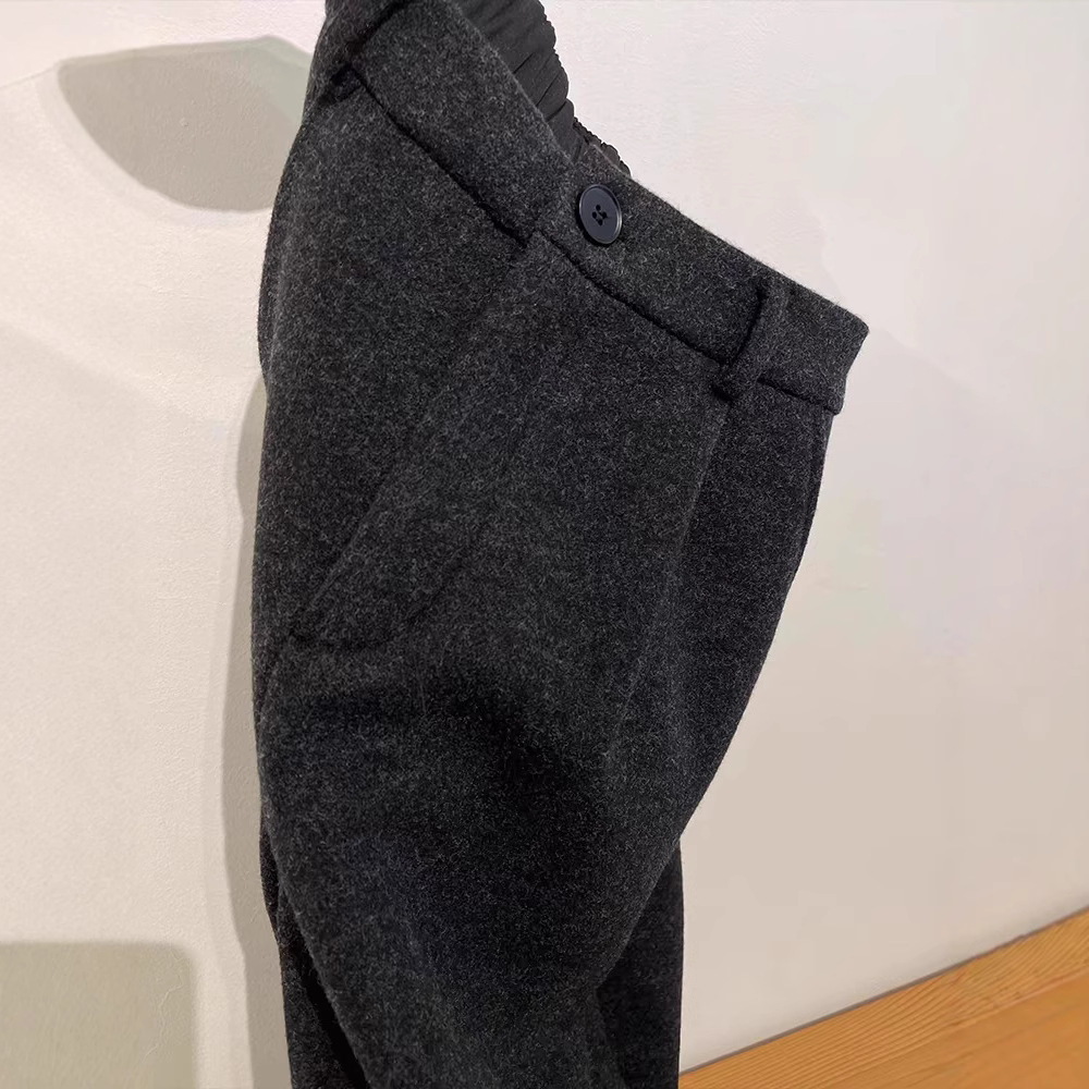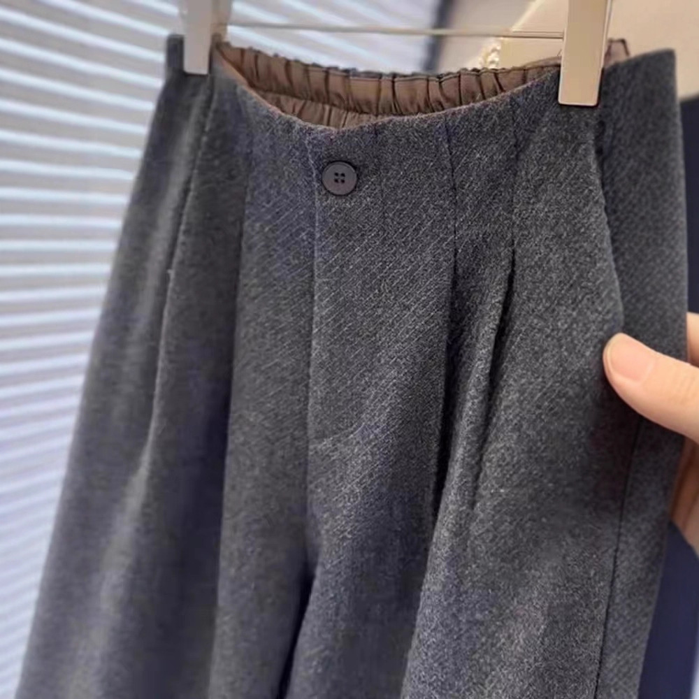 今日份穿搭推荐!高腰灰色呢子直筒裤女设计感宽松显瘦毛呢阔腿裤