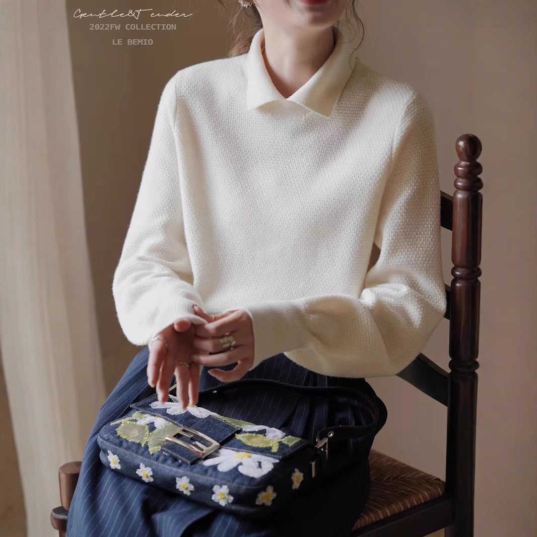 「白画」ウールレトロフランス風ワッフルニット泡袖新年クリスマスセーター女性秋冬新作