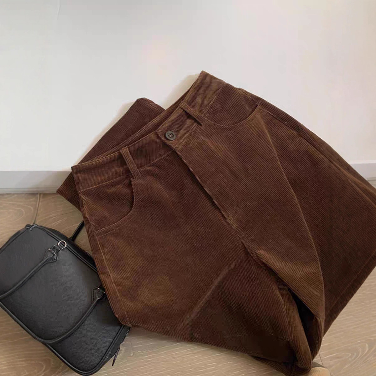 CHAO级推荐!棕咖色灯芯绒窄版秋直筒裤子美拉德穿搭条绒阔腿长裤