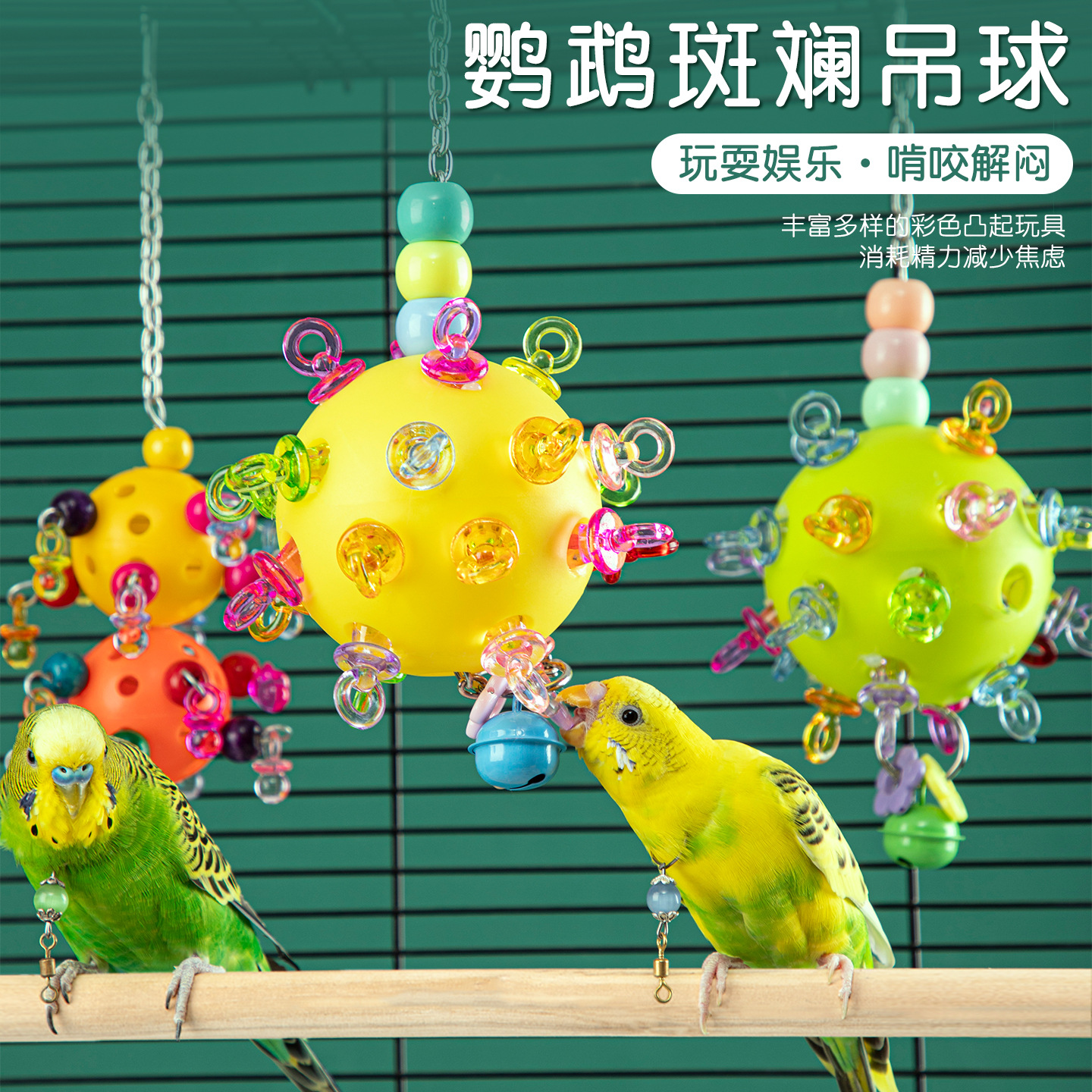 虎皮牡丹鹦鹉玩具啃咬挂件磨牙球小鸟解闷自嗨笼内装饰玩具大全