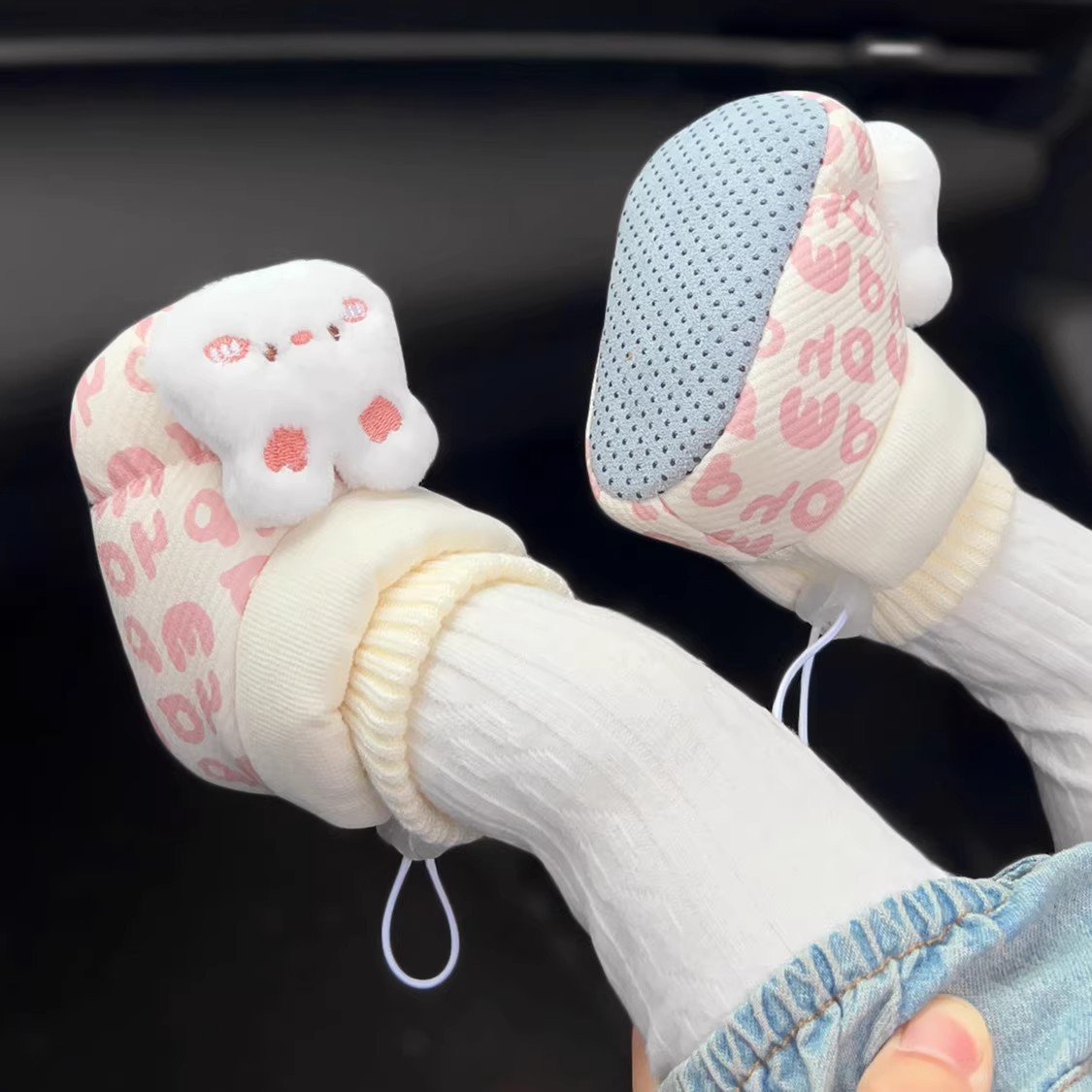 秋冬新生婴儿0-1岁男女宝宝卡通加厚鞋袜一体不掉跟加绒护脚棉鞋2