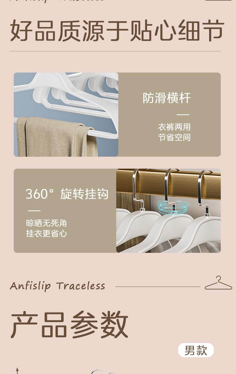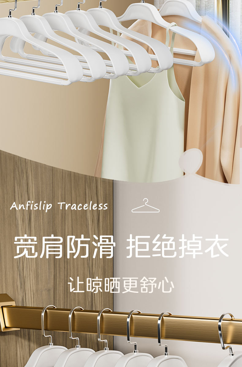 整理整頓専門家向け植毛ハンガー、跡が残らない、滑り止め、毛羽立ちなし、くぼみなし、家庭用物干しハンガー、収納回転ハンガー
