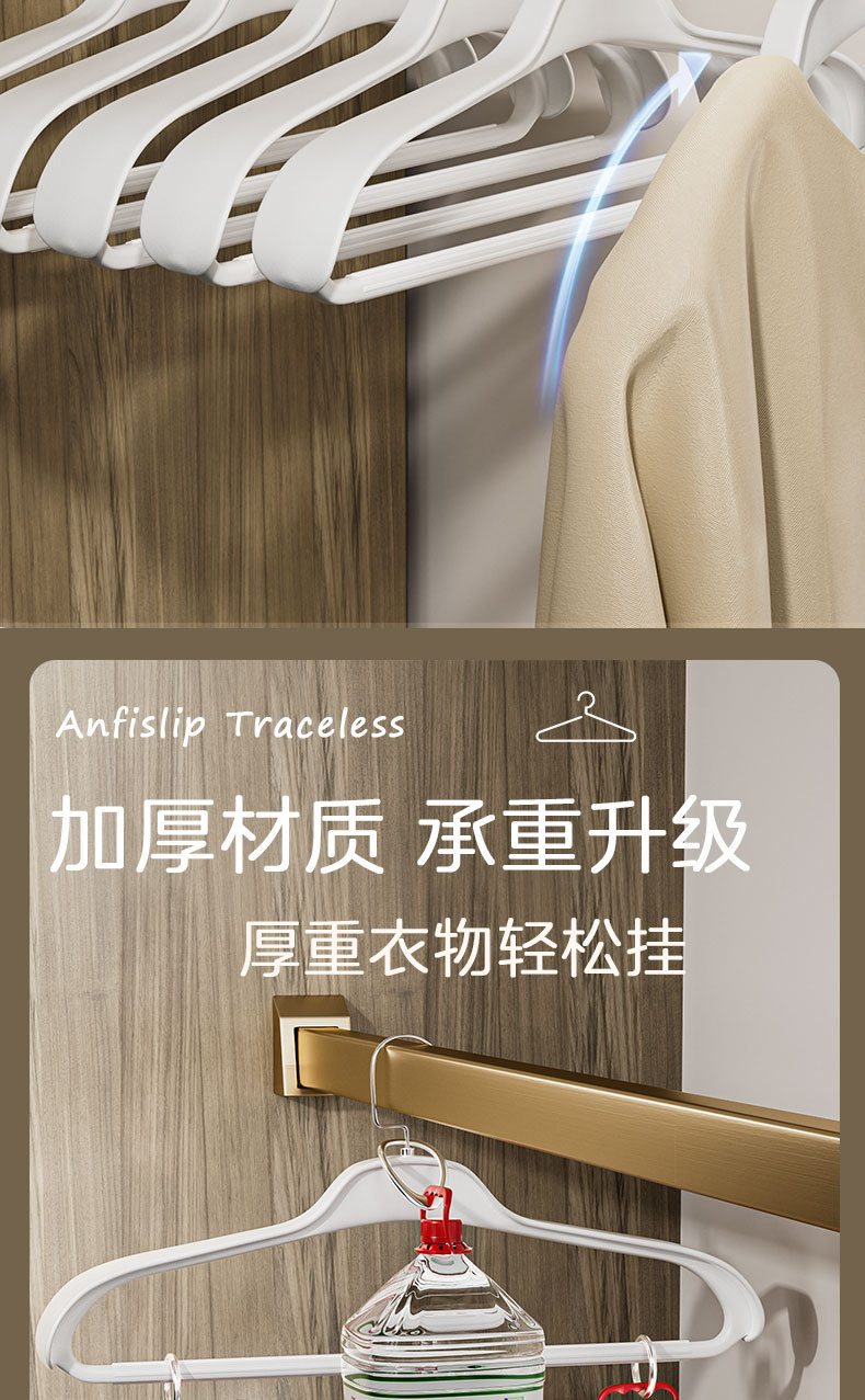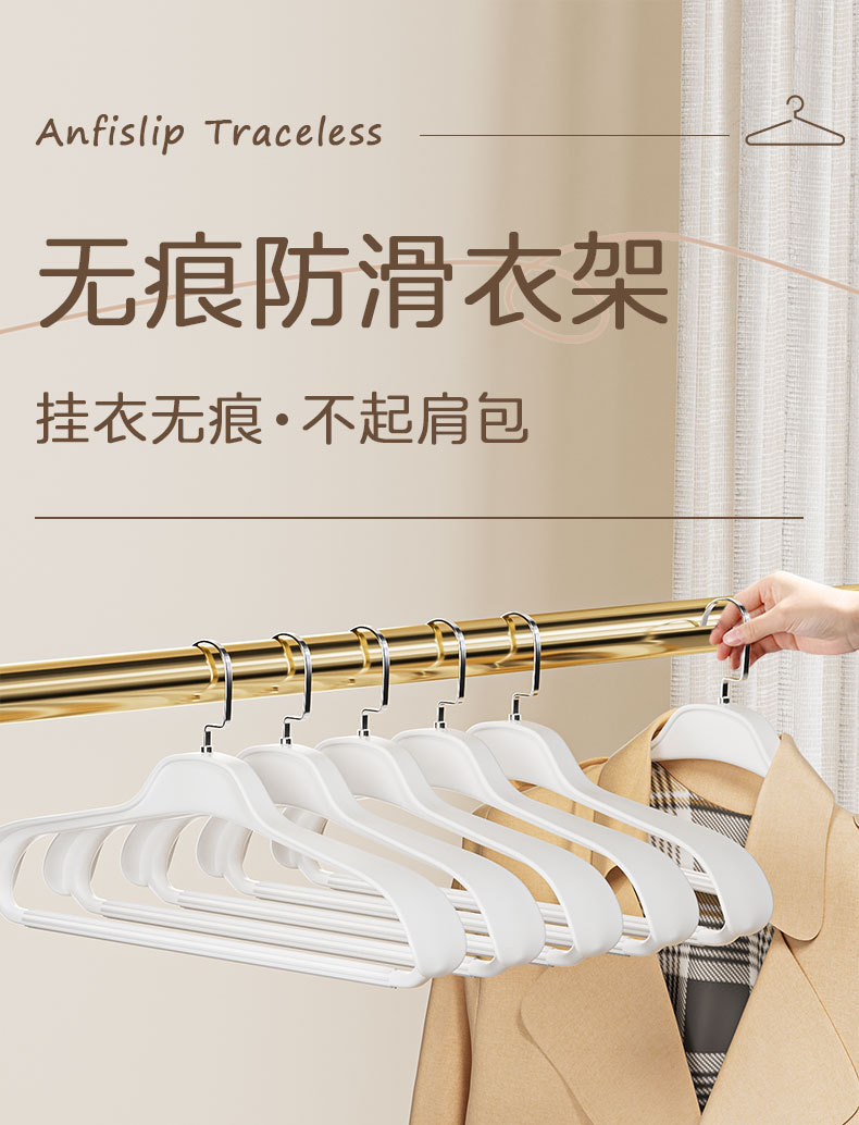 広い肩の成人家庭用太くなった金の無痕ハンガー学生寮の滑り止め乾湿防止肩角プラスチックハンガー