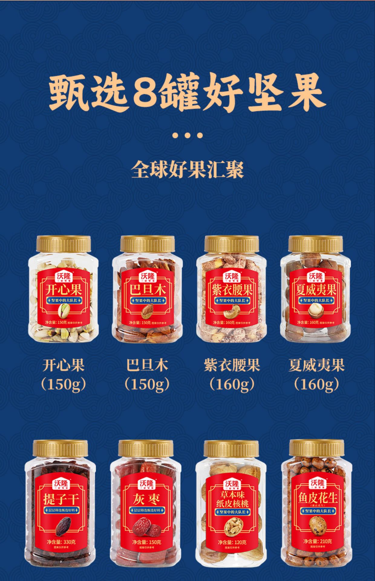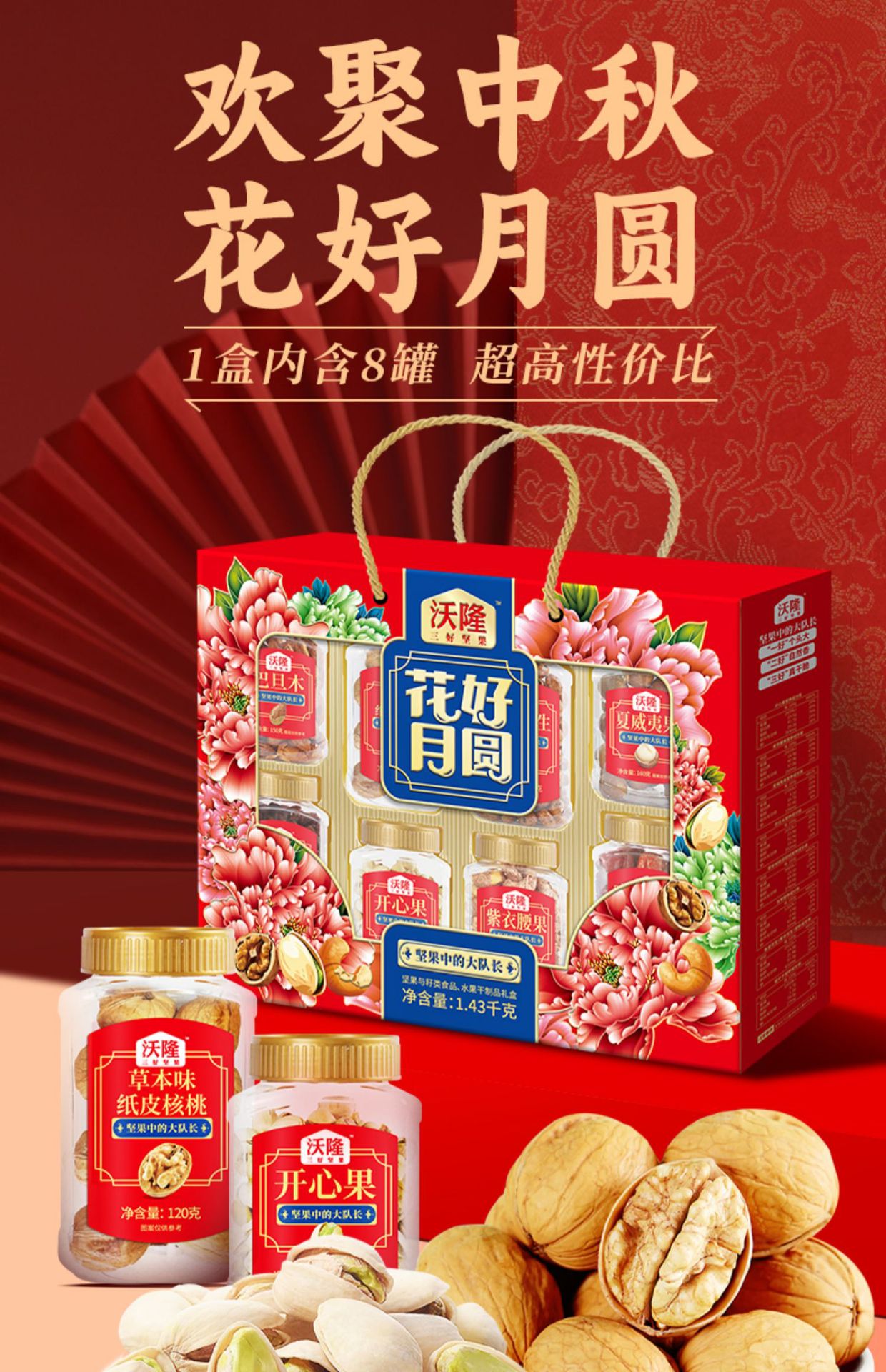 ウォロン花好月円ナッツ礼箱中秋節プレゼント福祉混合ナッツ仁礼包8缶kg