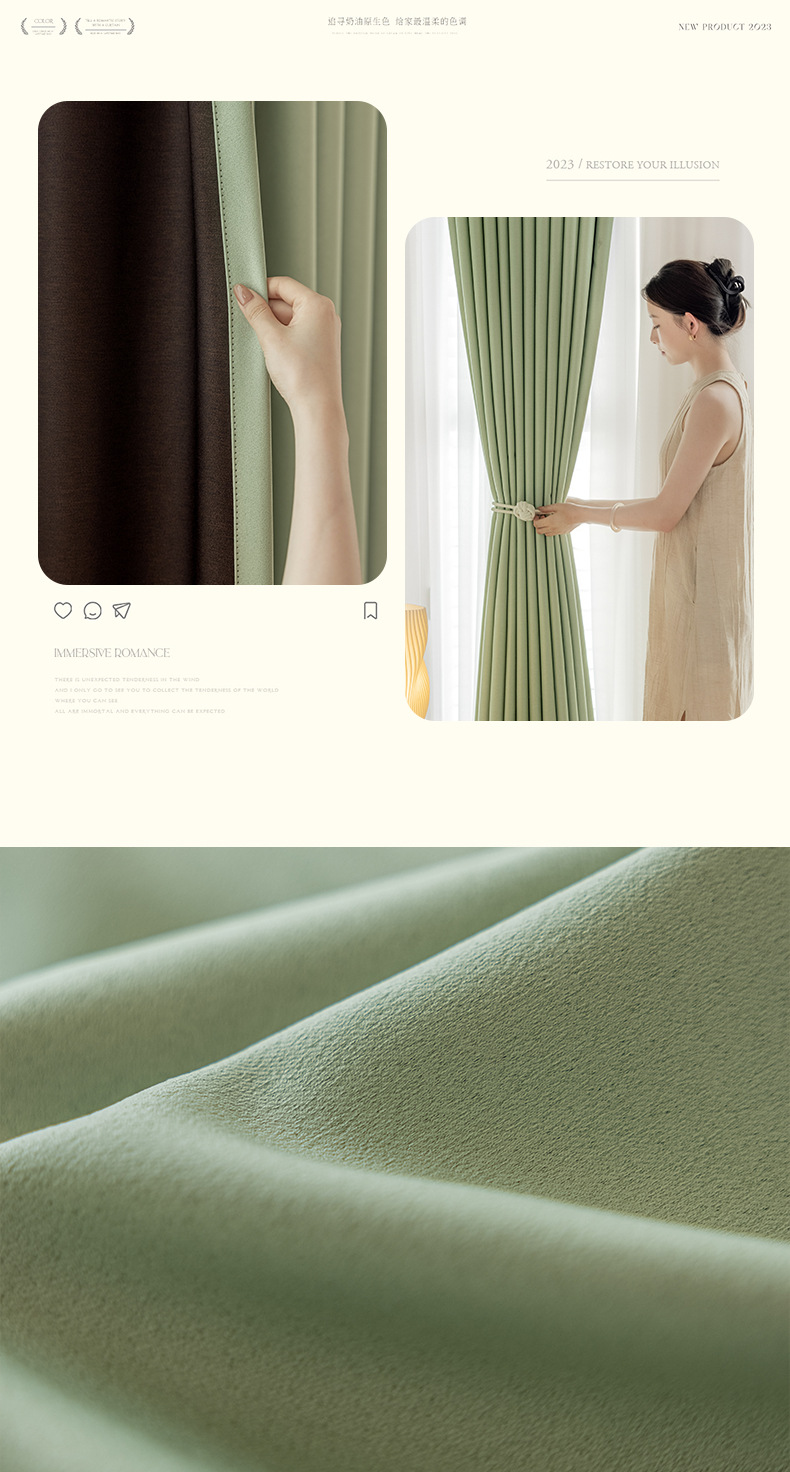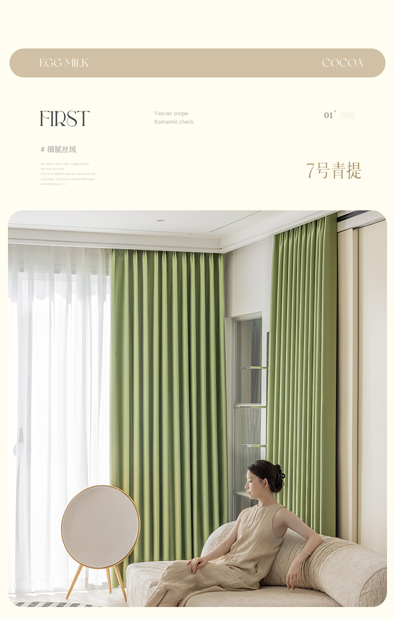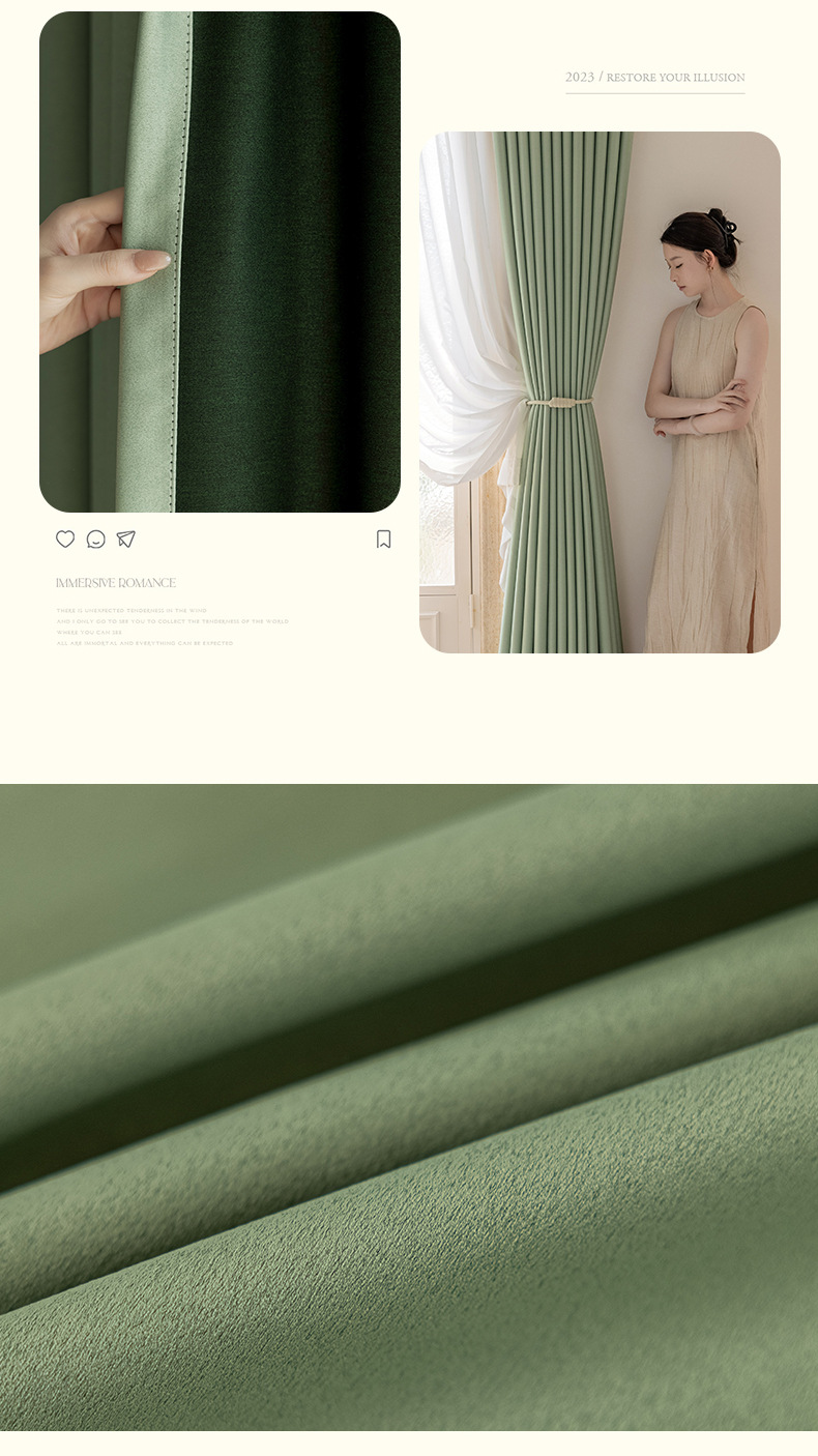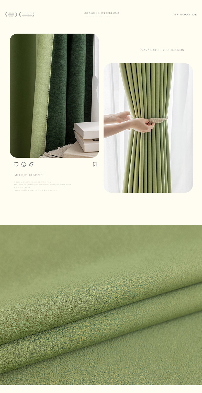 高級両面綿麻生地 厚手遮光カーテン生地 寝室用抹茶グリーン 紹興卸売 高遮光カーテン