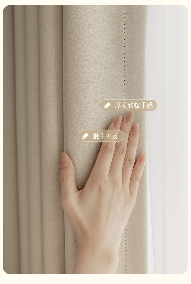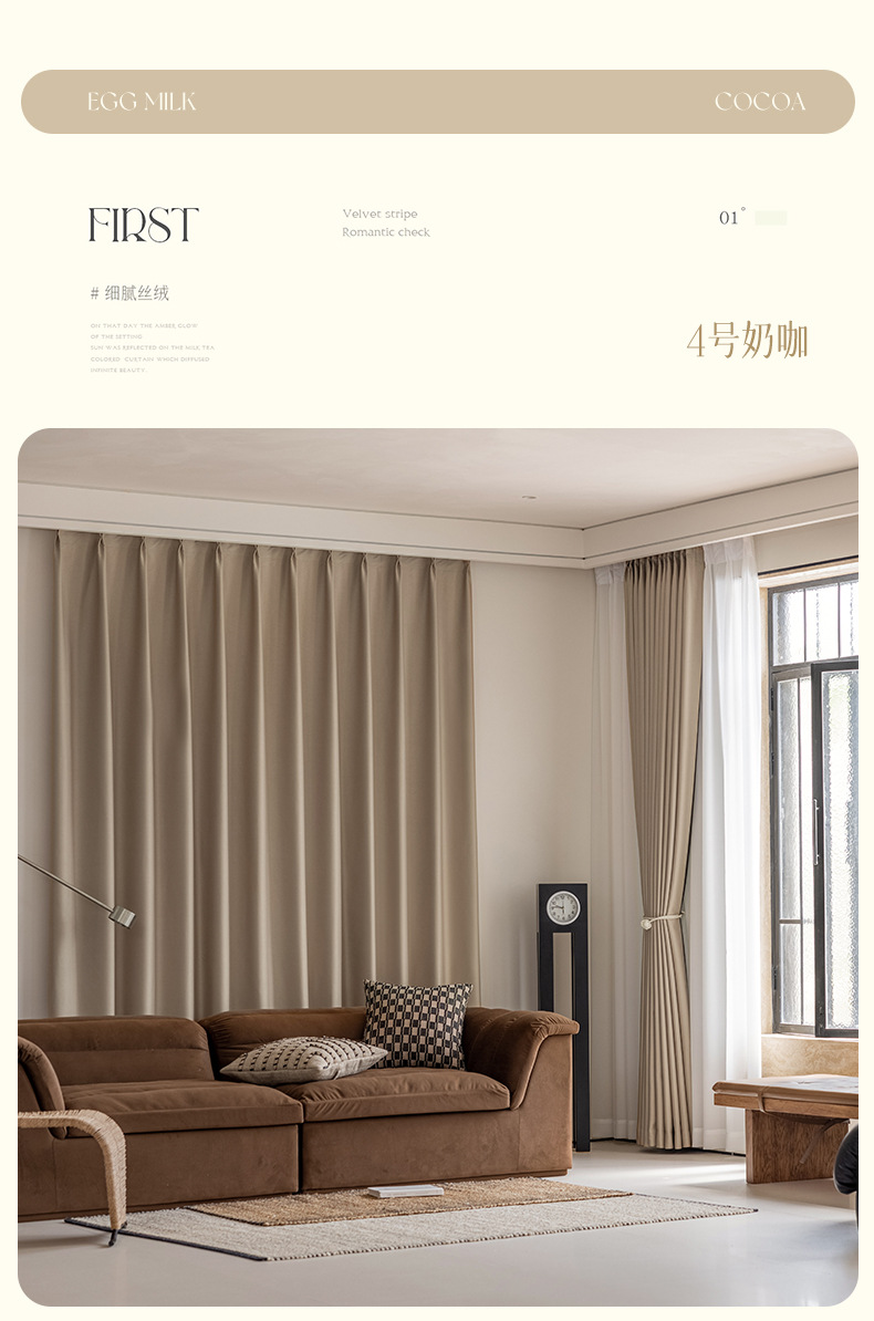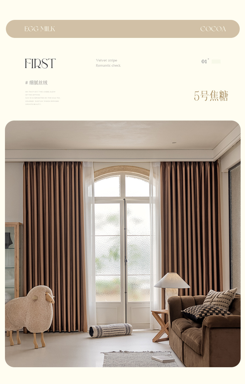 双面慕斯羊绒高级感窗帘雪尼尔加厚全遮光客厅轻奢奶茶色卧室窗帘