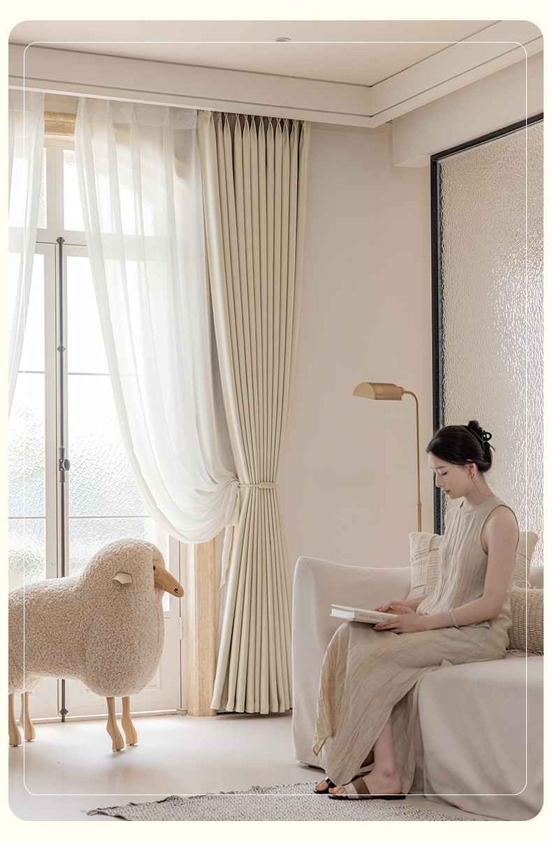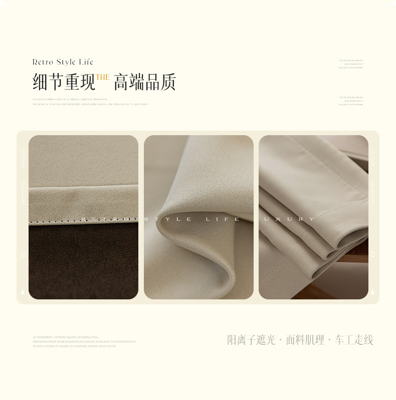 無料スタイリング完全遮光シェニール両面同色カーテン寝室リビングルームフックタイプフレンチライト高級クリームスタイル