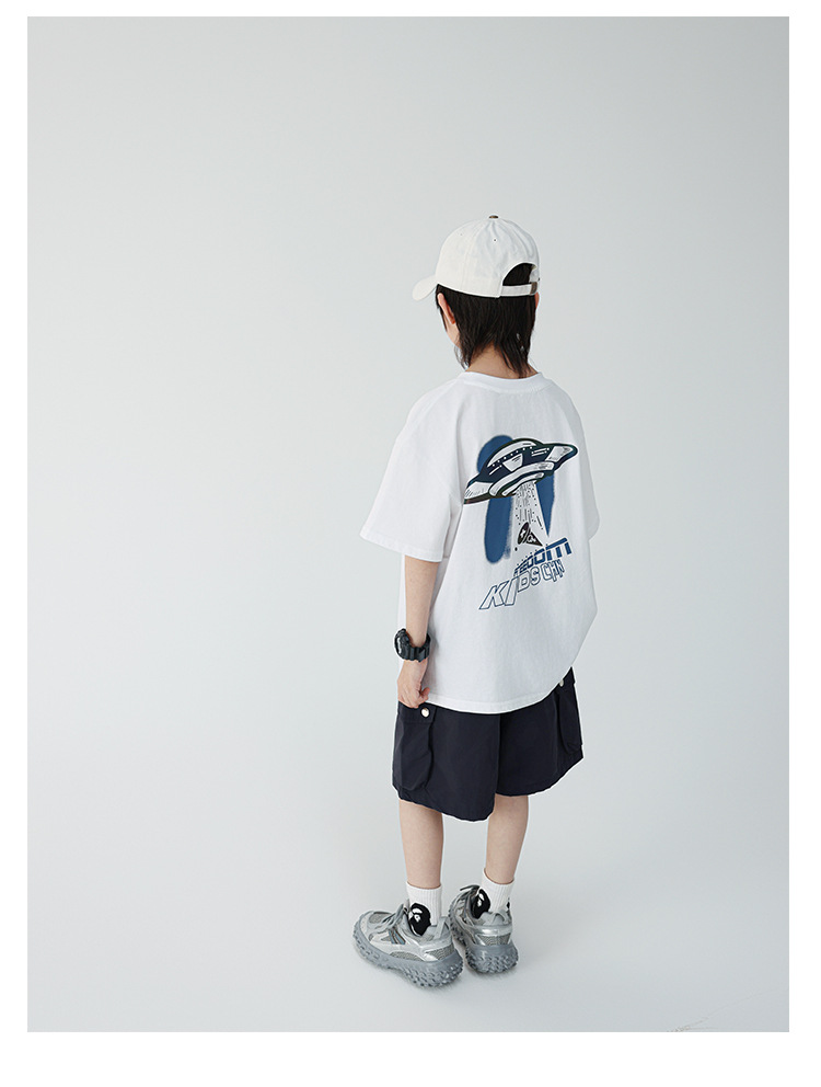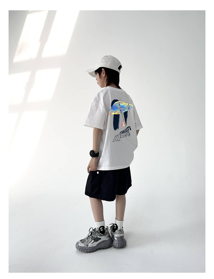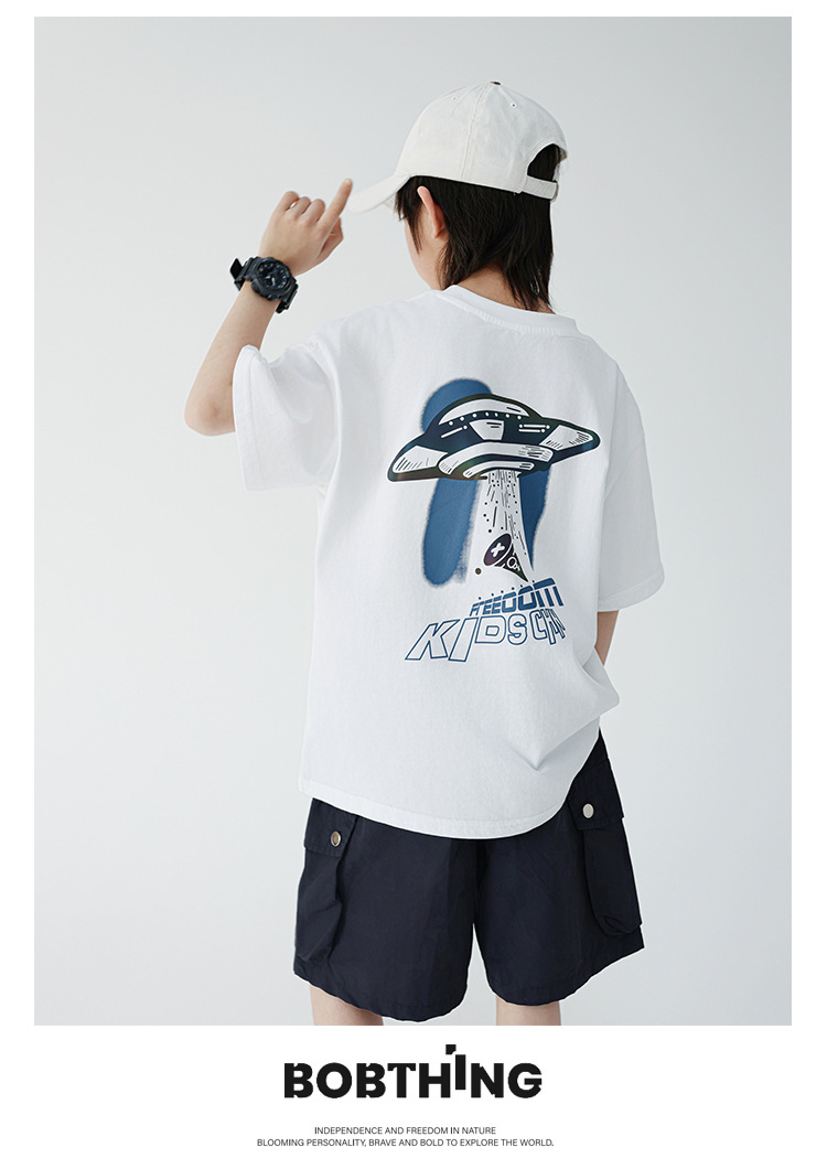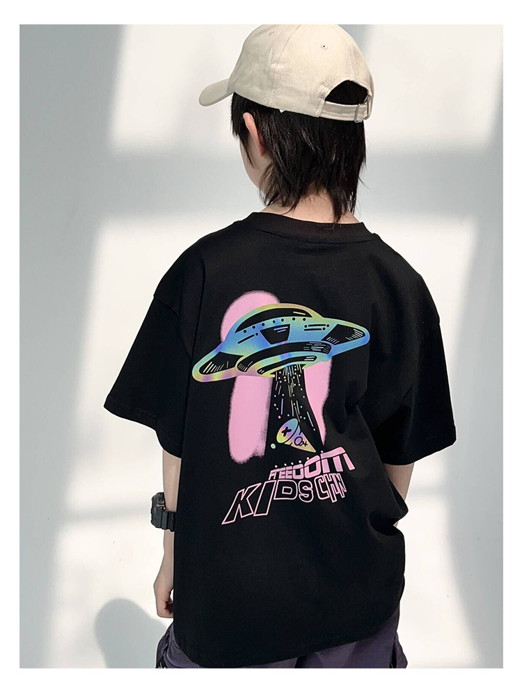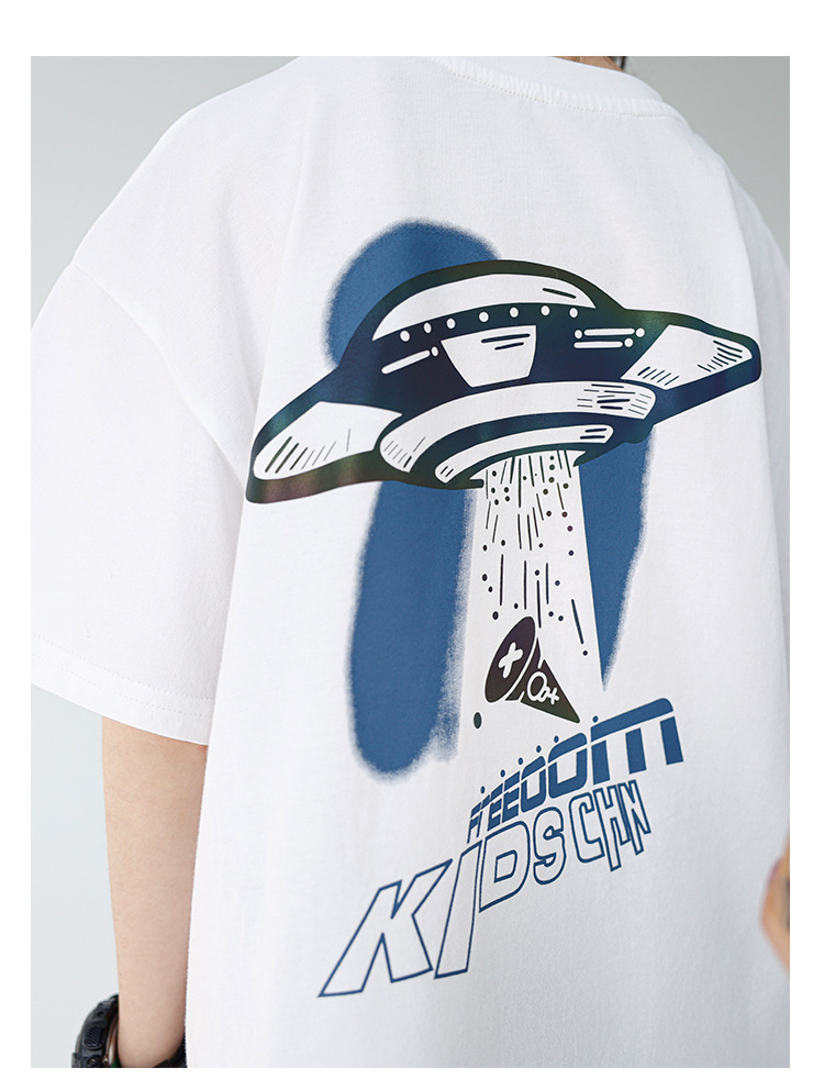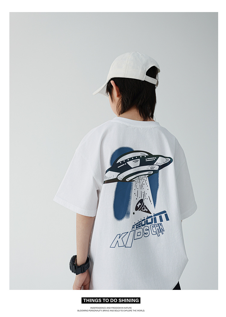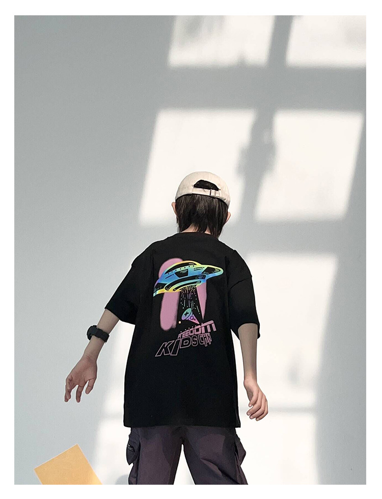 男の子レーザー反射宇宙船半袖白tシャツ潮クール上着子供夏半袖tシャツ中大子供服