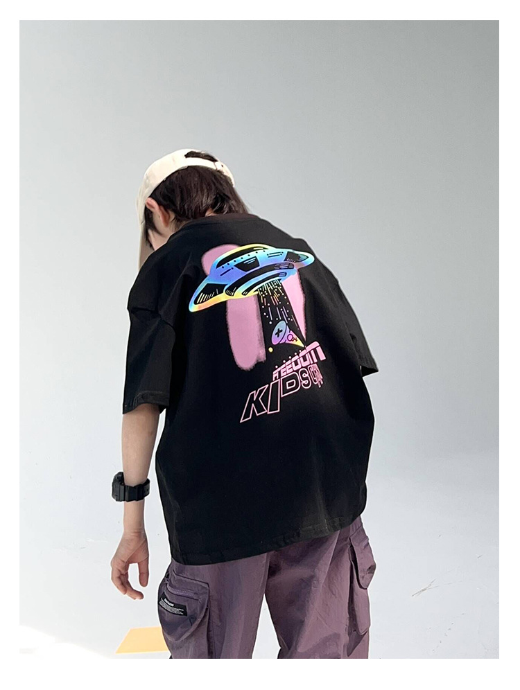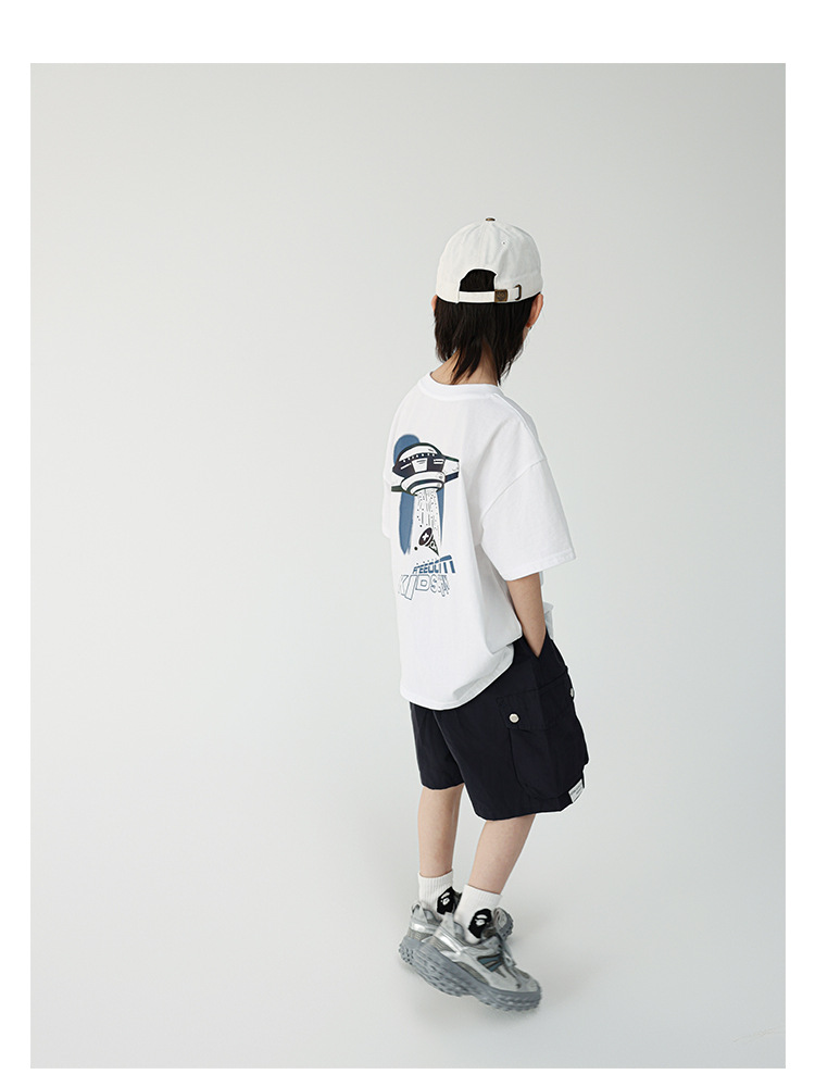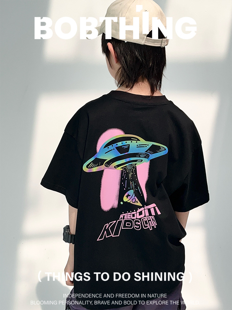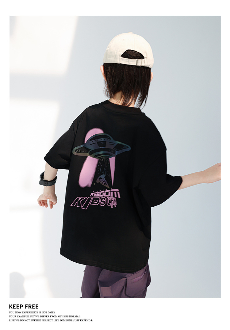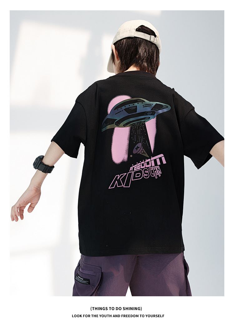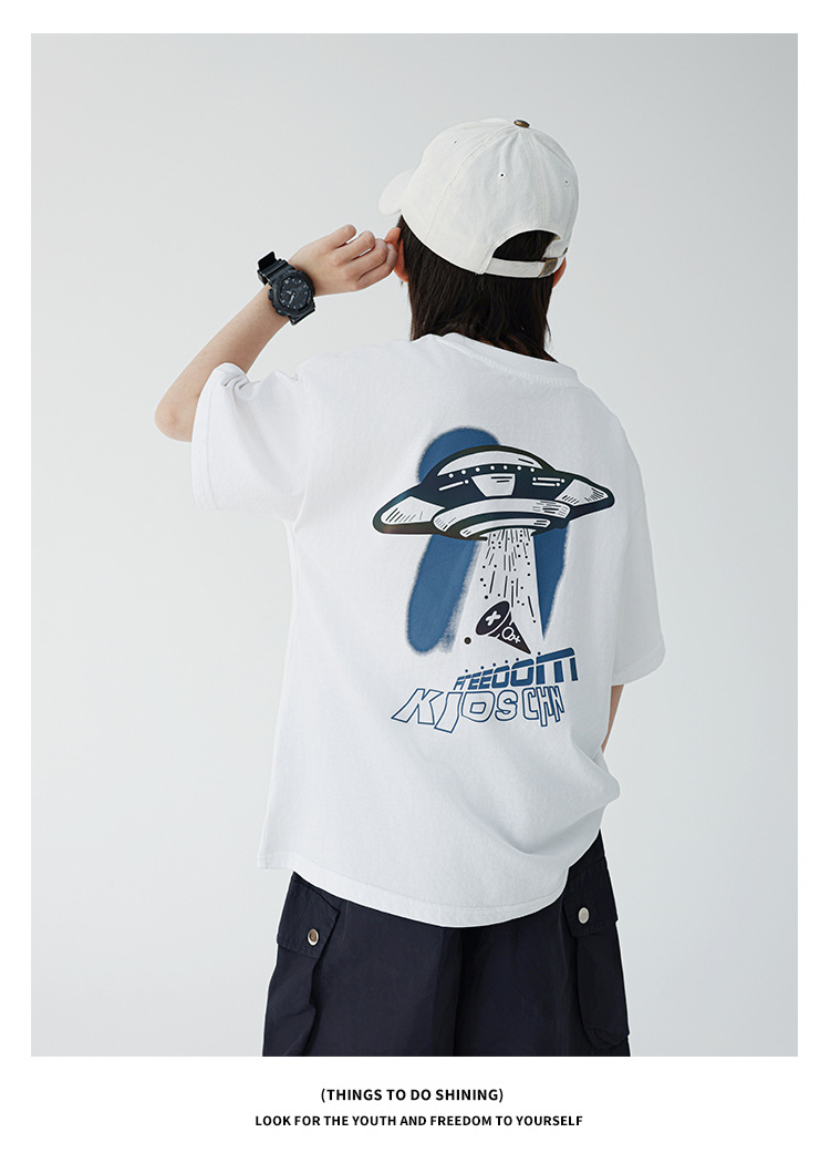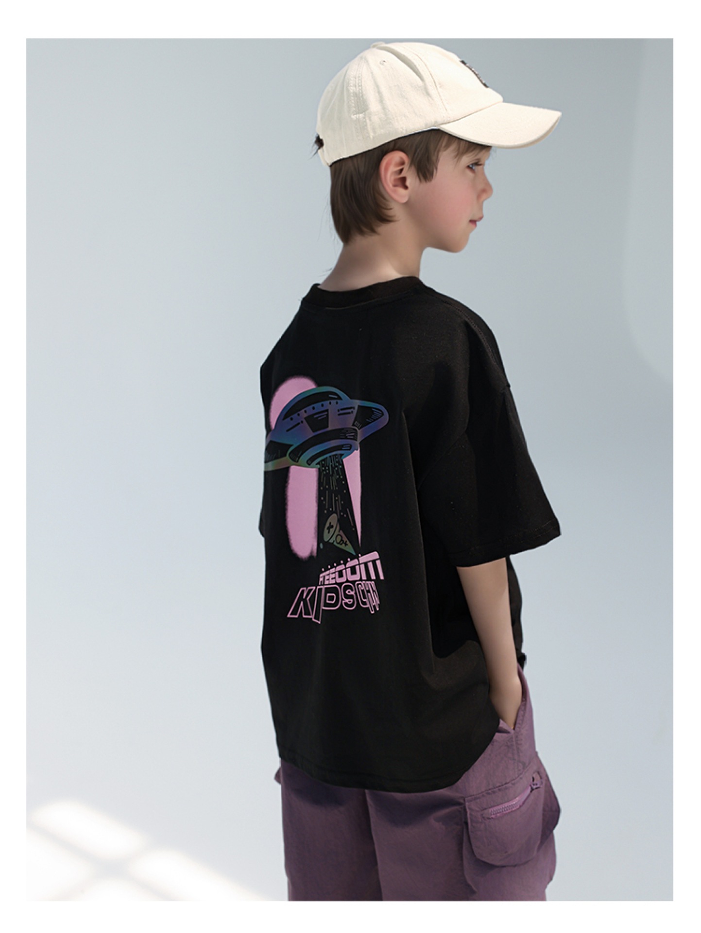 男の子レーザー反射宇宙船半袖白tシャツ潮クール上着子供夏半袖tシャツ中大子供服