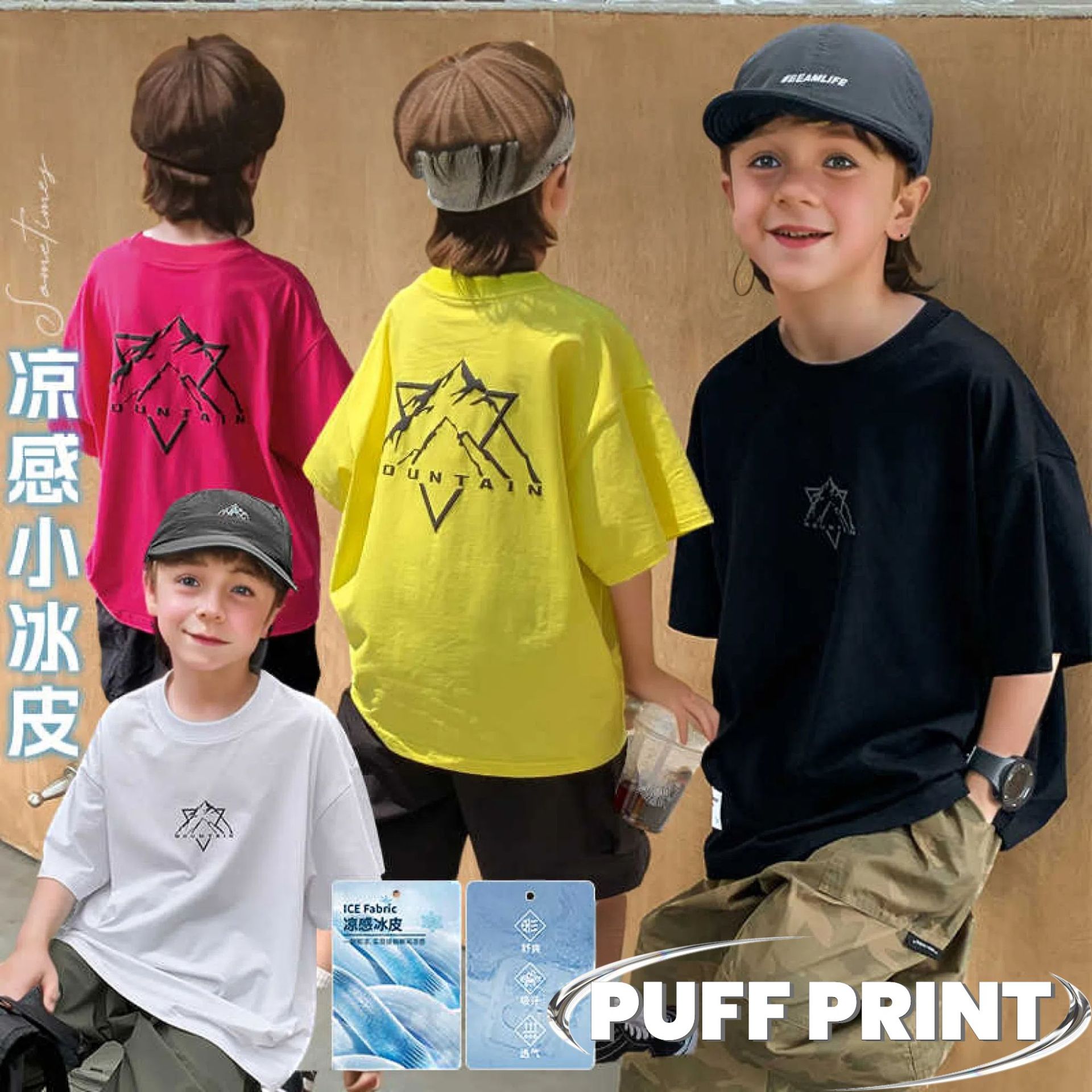 犬の漫画の子供服の子供の夏の上着の男の子の半袖のtシャツ2025の新型の中で大きい子供の氷爽の半袖の潮